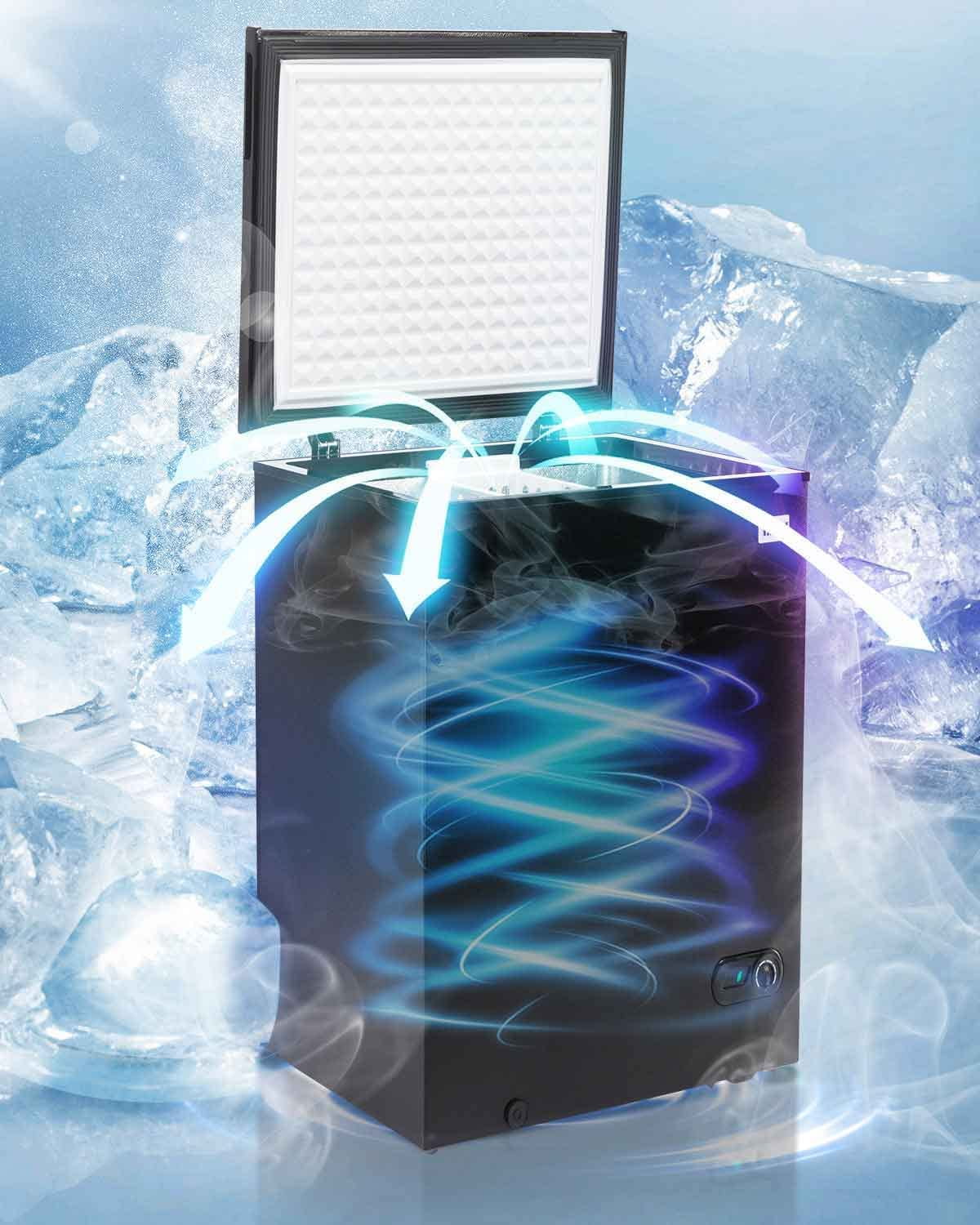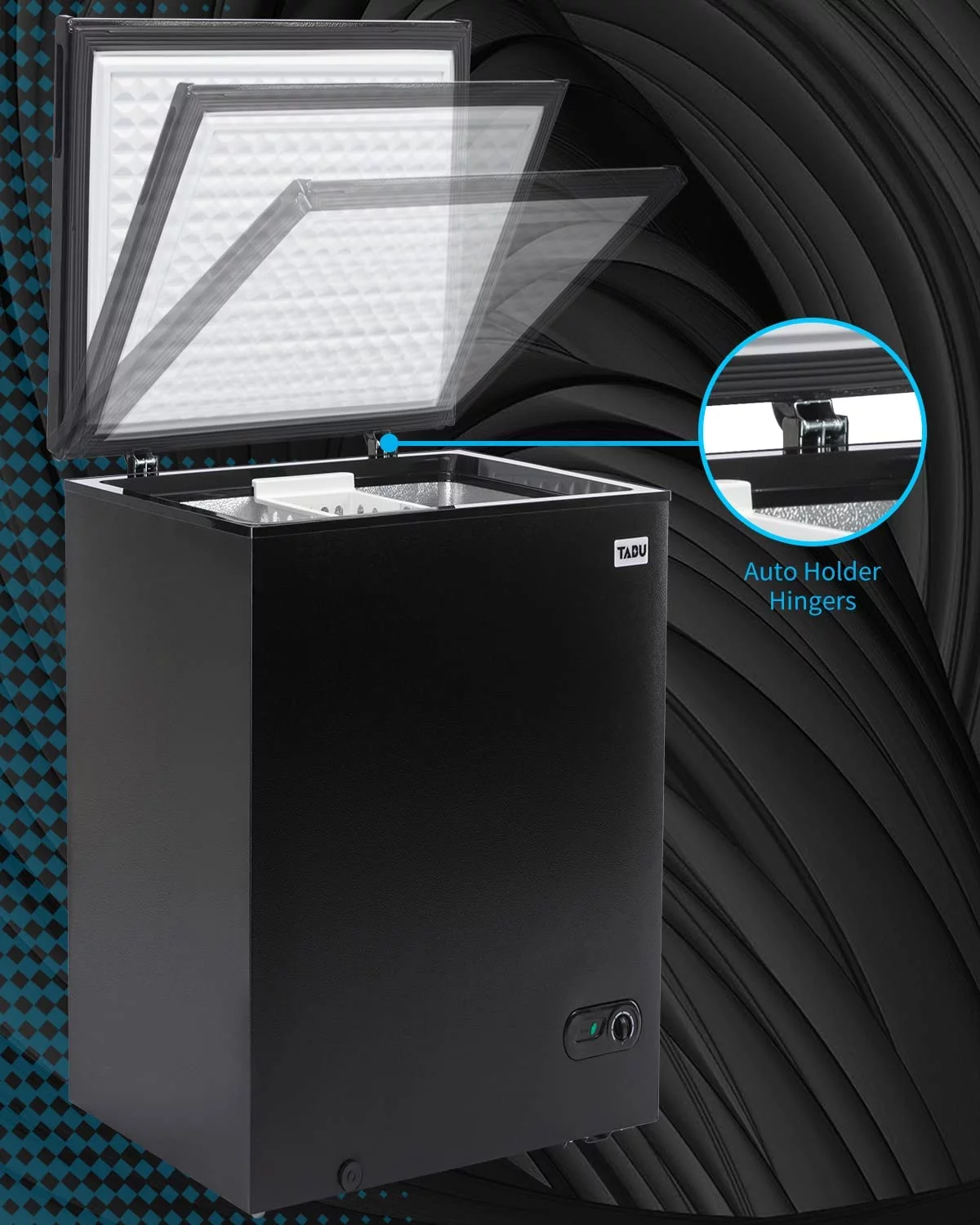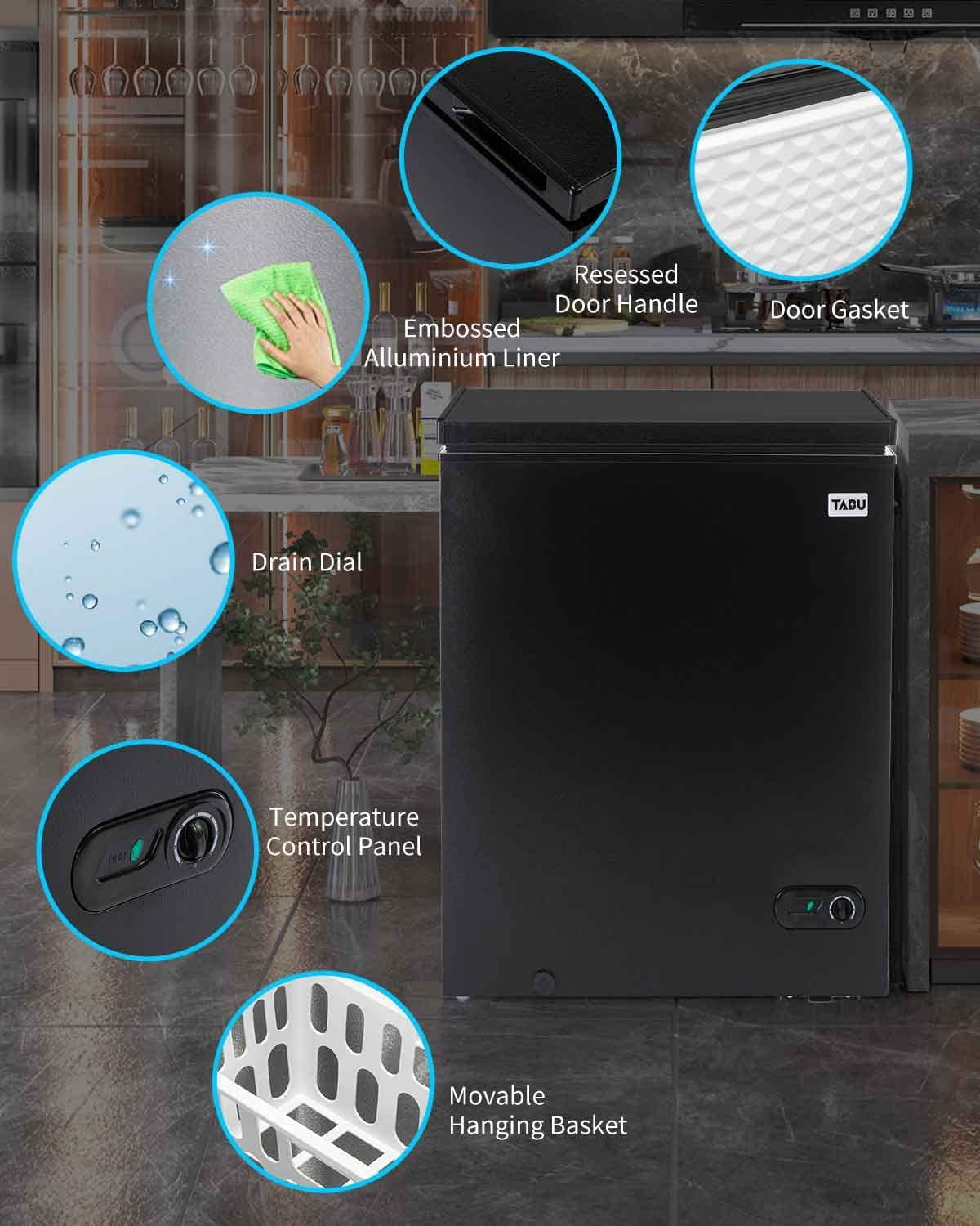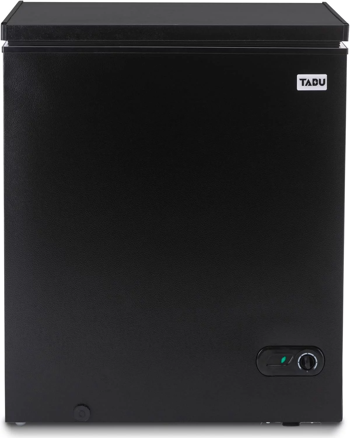 TABU Chest Freezer, 10.0 Cu Ft Deep Freezer with Removable Basket, Adjustable Temperature, Compact Freezer with Top Open Door (Black)