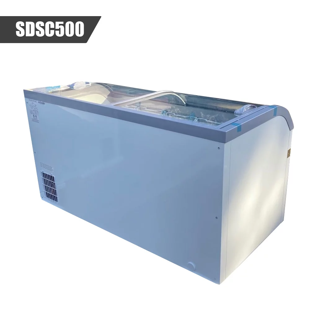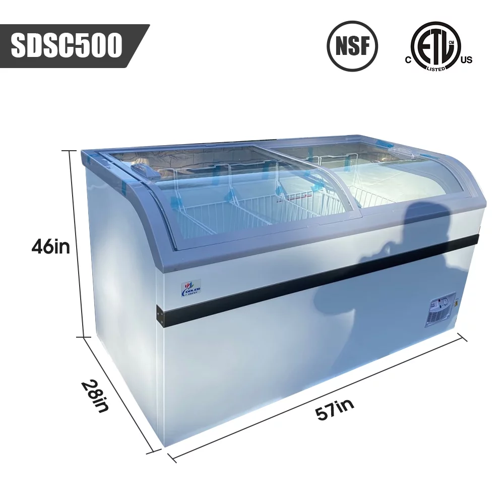 18 Cu.Ft 58" Chest Freezer for Super Market Glass sliding Door White Showcase Freezer Curve Display Top w/Storage Baskets Cooler Depot SDSC500WM
