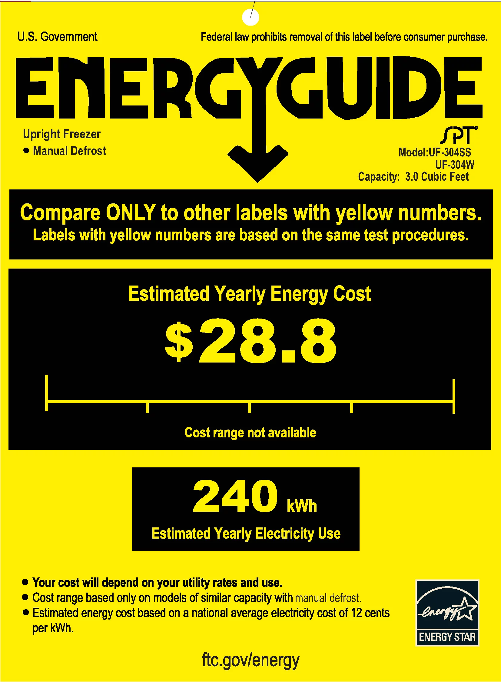 Sunpentown 3.0 Cu ft Upright Freezer with Energy Star, Stainless Steel