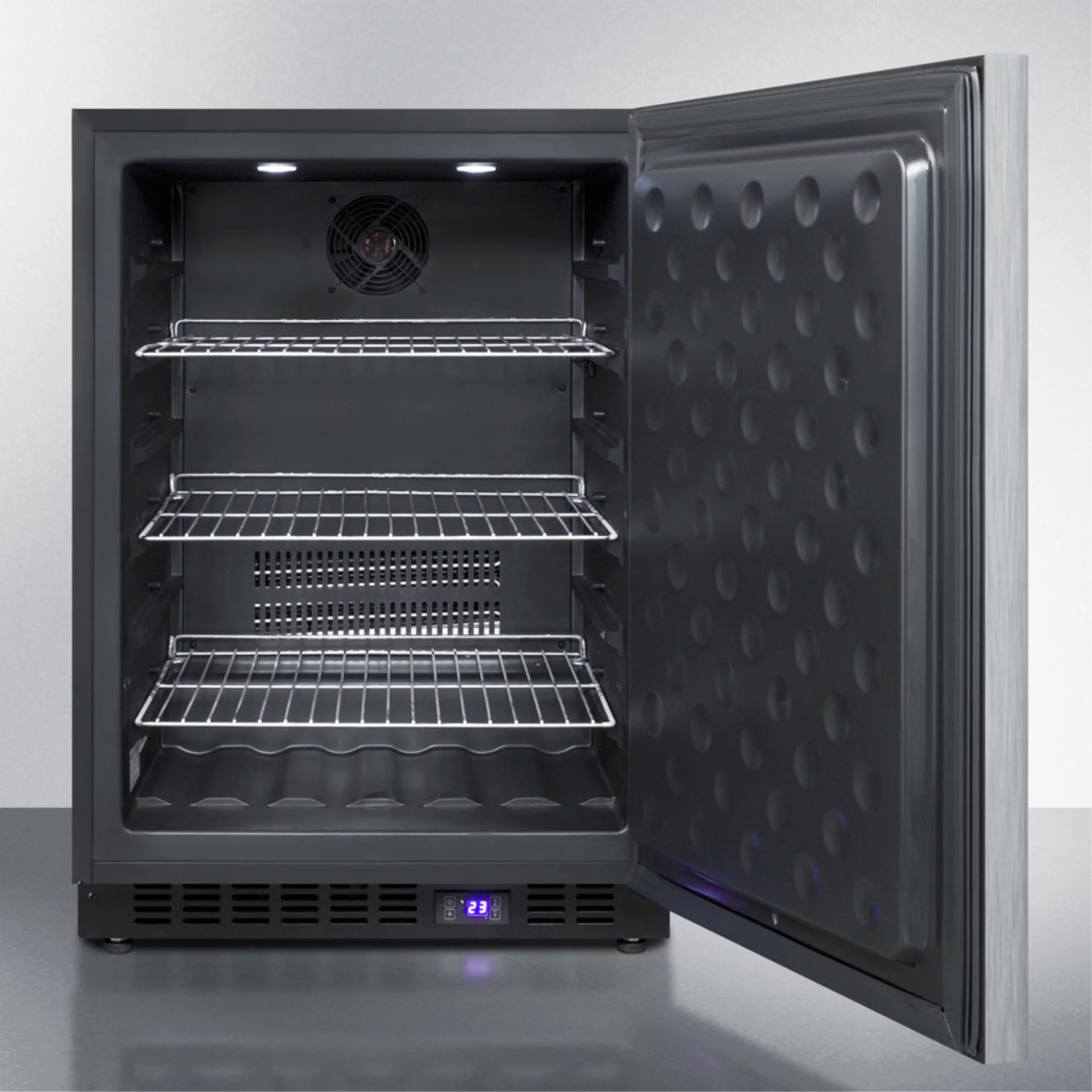 Frost-free outdoor all-freezer w/digital thermostat, LED light, black cabinet, lock, stainless steel door and horizontal handle