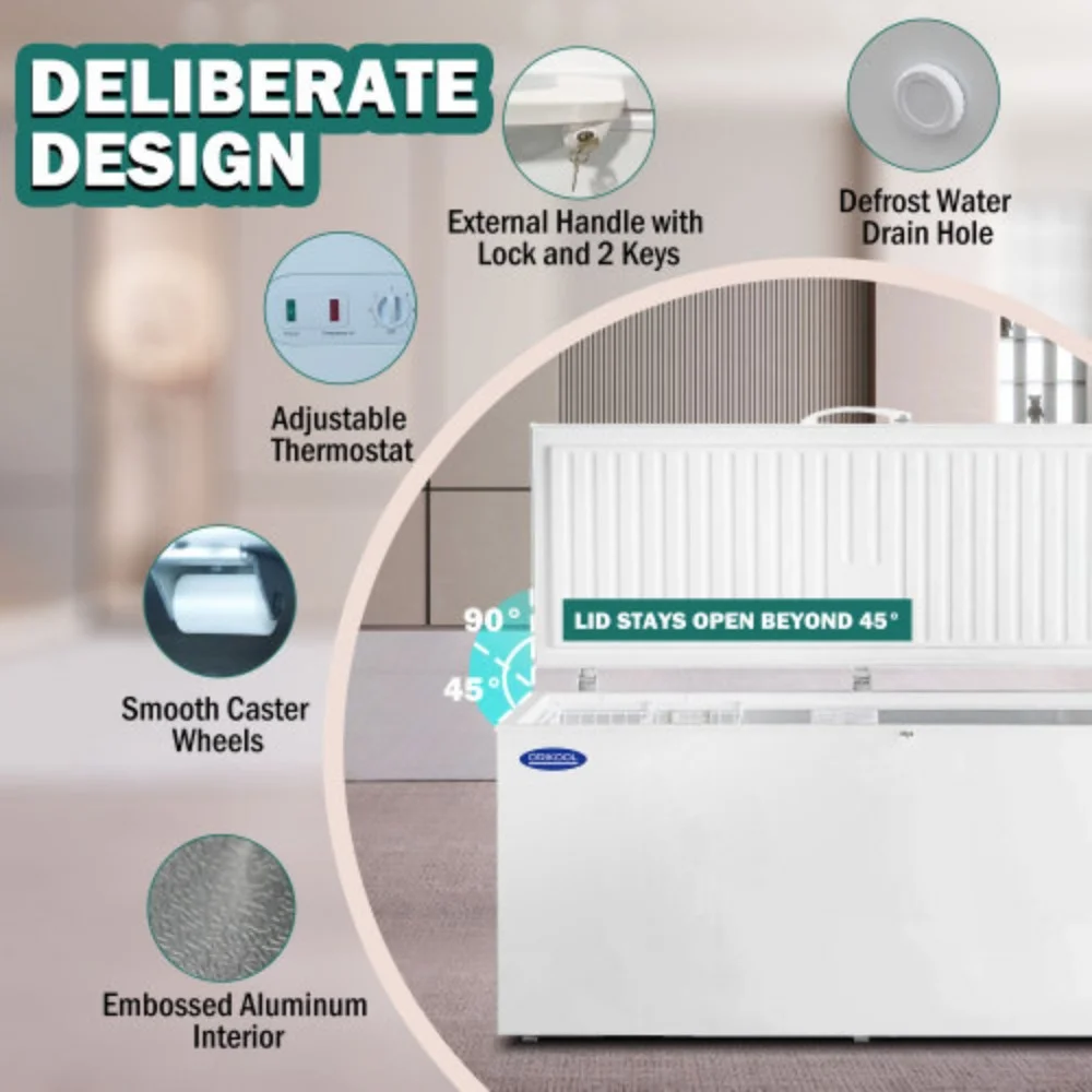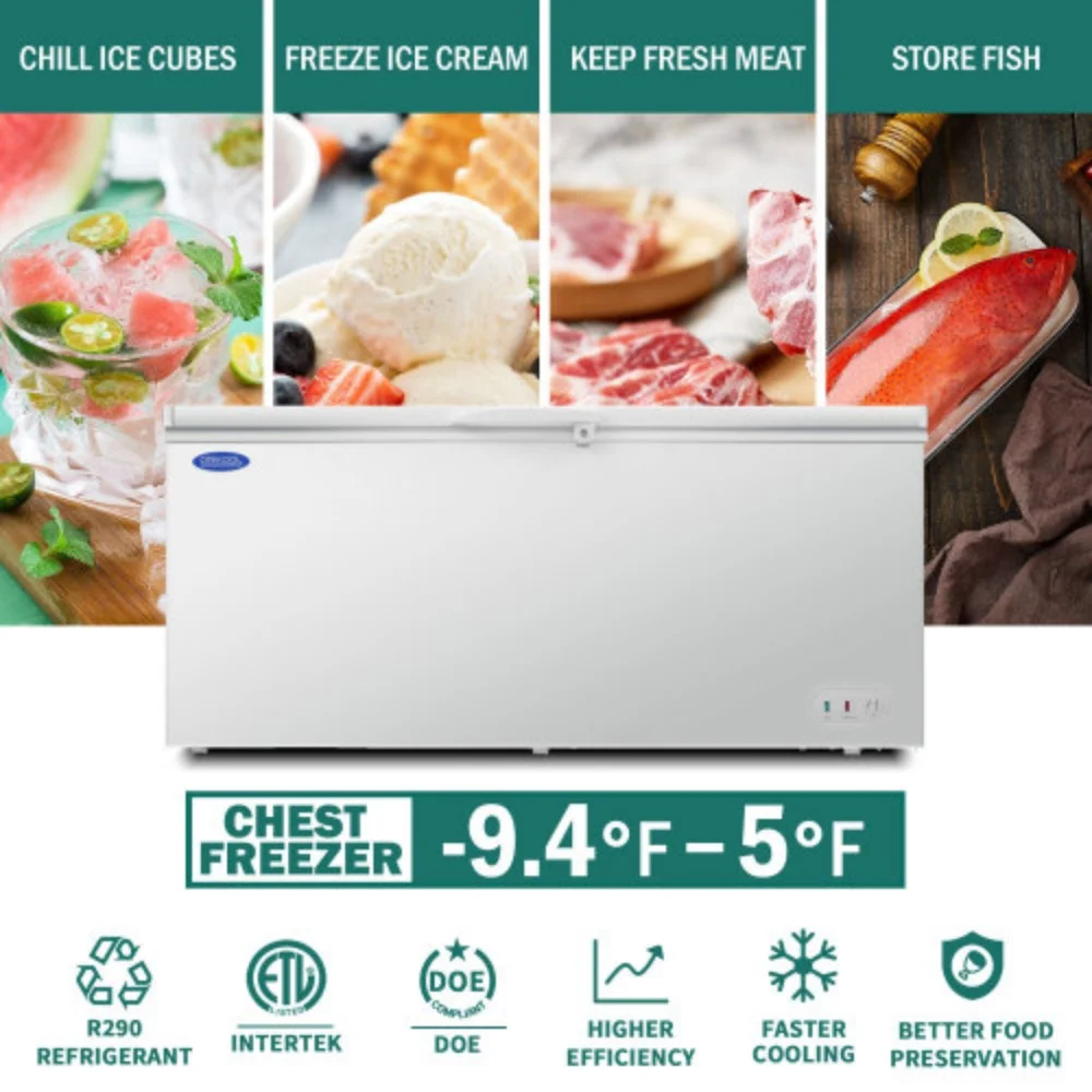 ORIKOOL Chest Freezer 20.1 Cu.ft Solid Top Commercial Deep Chest Freezers with Lockable Stay-Open Lid Painted for Back-of-House Bulk Storage White + Steel