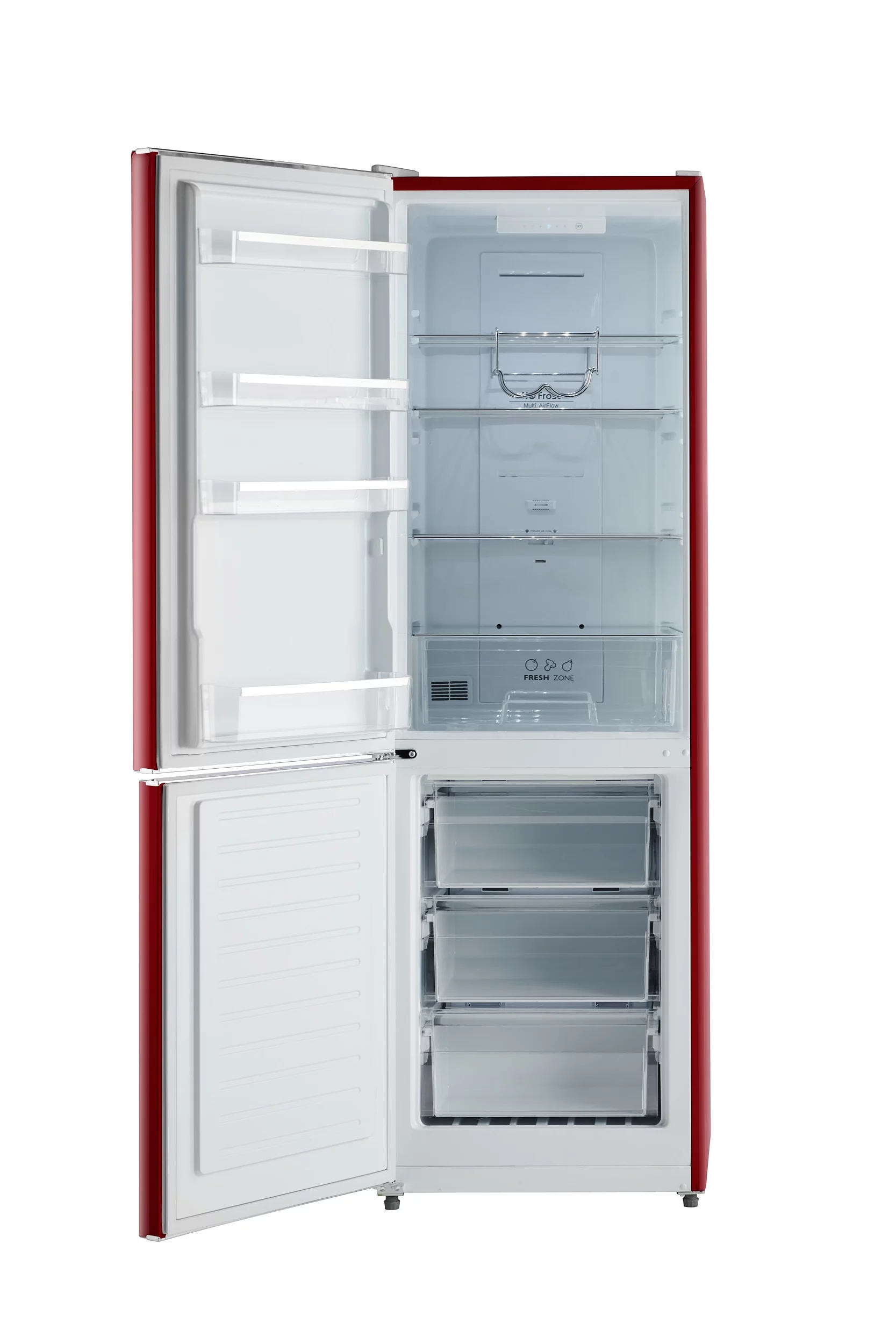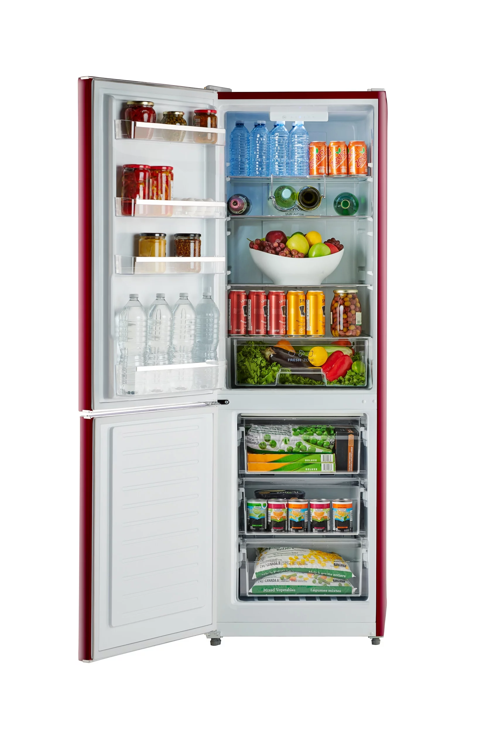 iio 24" 11 Cu Ft Bottom Freezer Retro Refrigerator, Fridge for Bedroom, Multiflow 360°, Small Mini Ice Cube Tray, 1 Fruit container, LED, Dorm Office Beverage Quiet Compressor, Wine Red (Left Hinge)