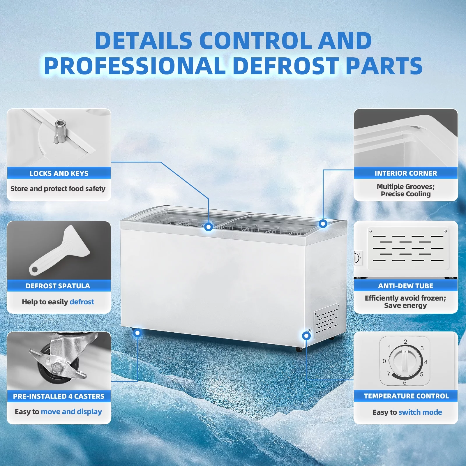 13 Cuft 50" Commercial Freezer Chest freezer Restaurant White Solid Flat Top w/Storage Baskets Cooler Depot