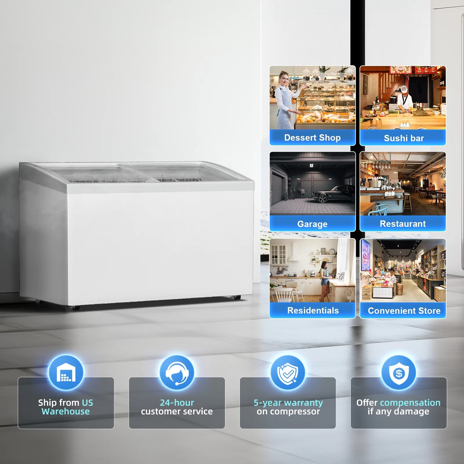 Hoccot 20 Cu.Ft Ice Cream Display Freezer Commercial Freezer 71 in. Cabinet Curved Glass Door 7 Removable Baskets White