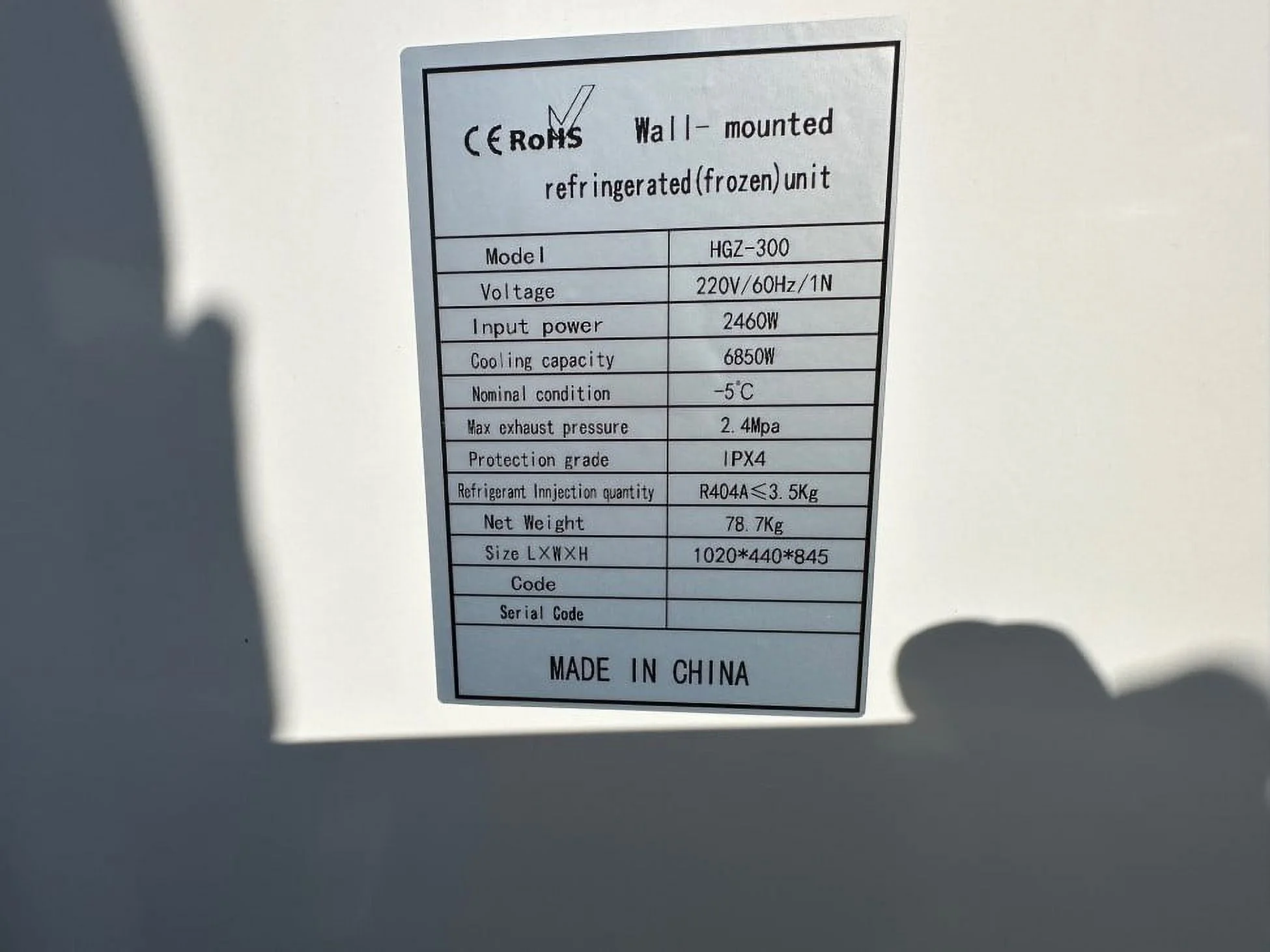 Wall-mounted Commercial Freezer Condensing Refrigerated Unit, Air Cooler, 6850W Cooling Capacity