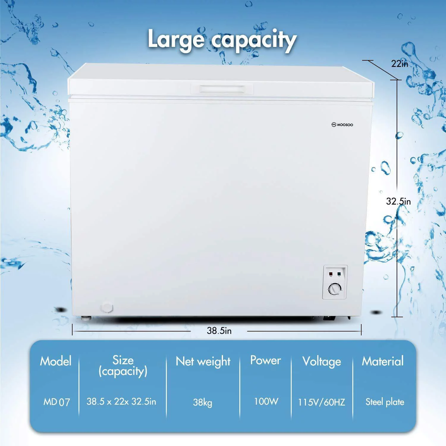 Chest Freezer MOOSOO 7.0 Cu ft Deep Freezer Chest Freezer with Energy Saving and Low-Noise, MD07, White
