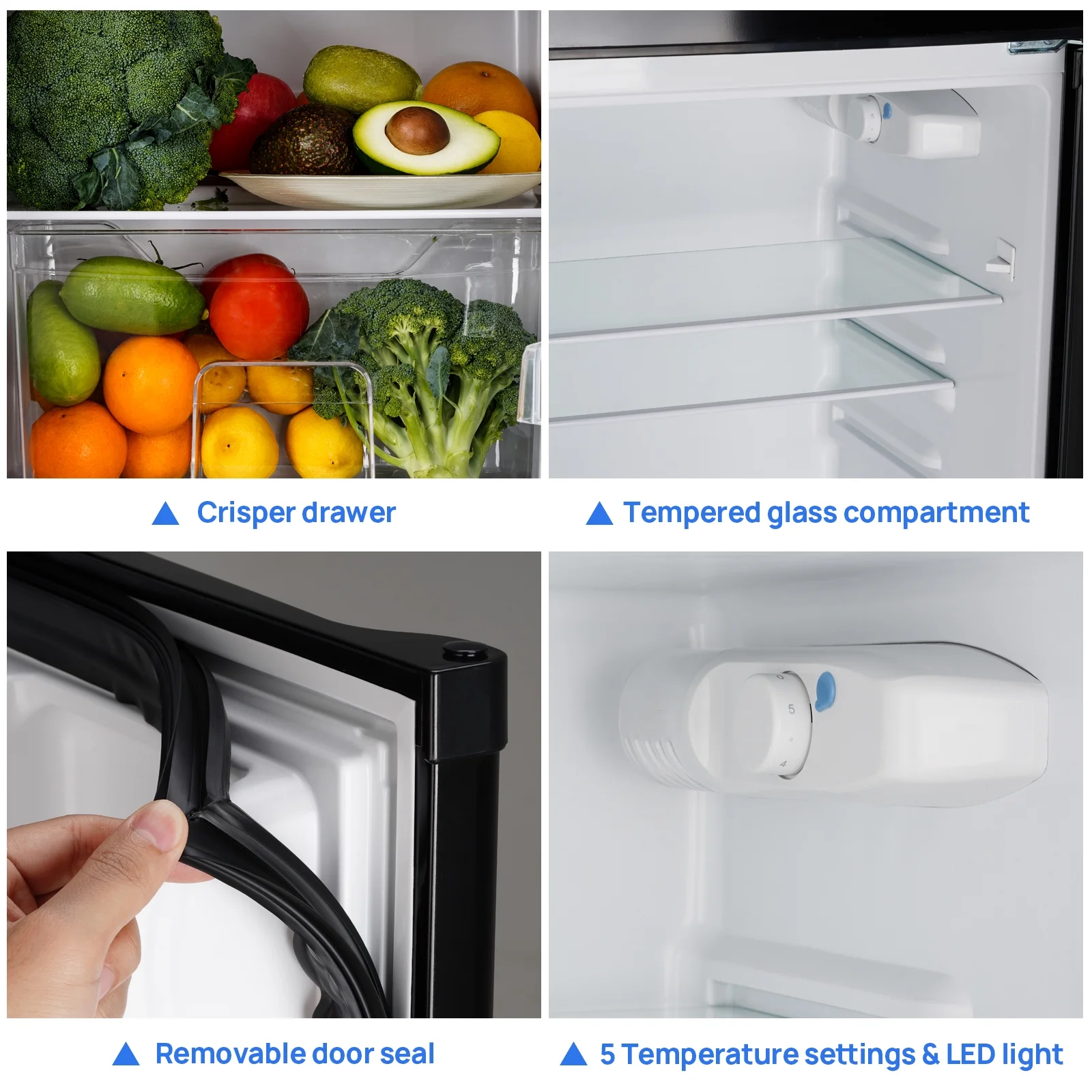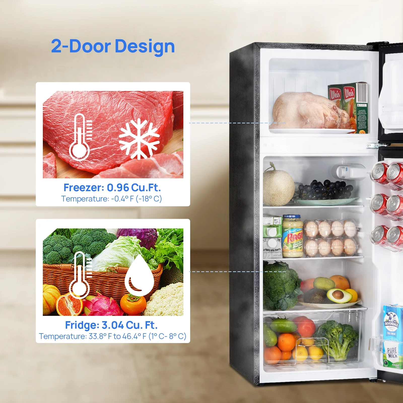 Upstreman 4.0 Cu.Ft Compact Refrigerator with Freezer, Large Capacity Double Door Mini Fridge-Black