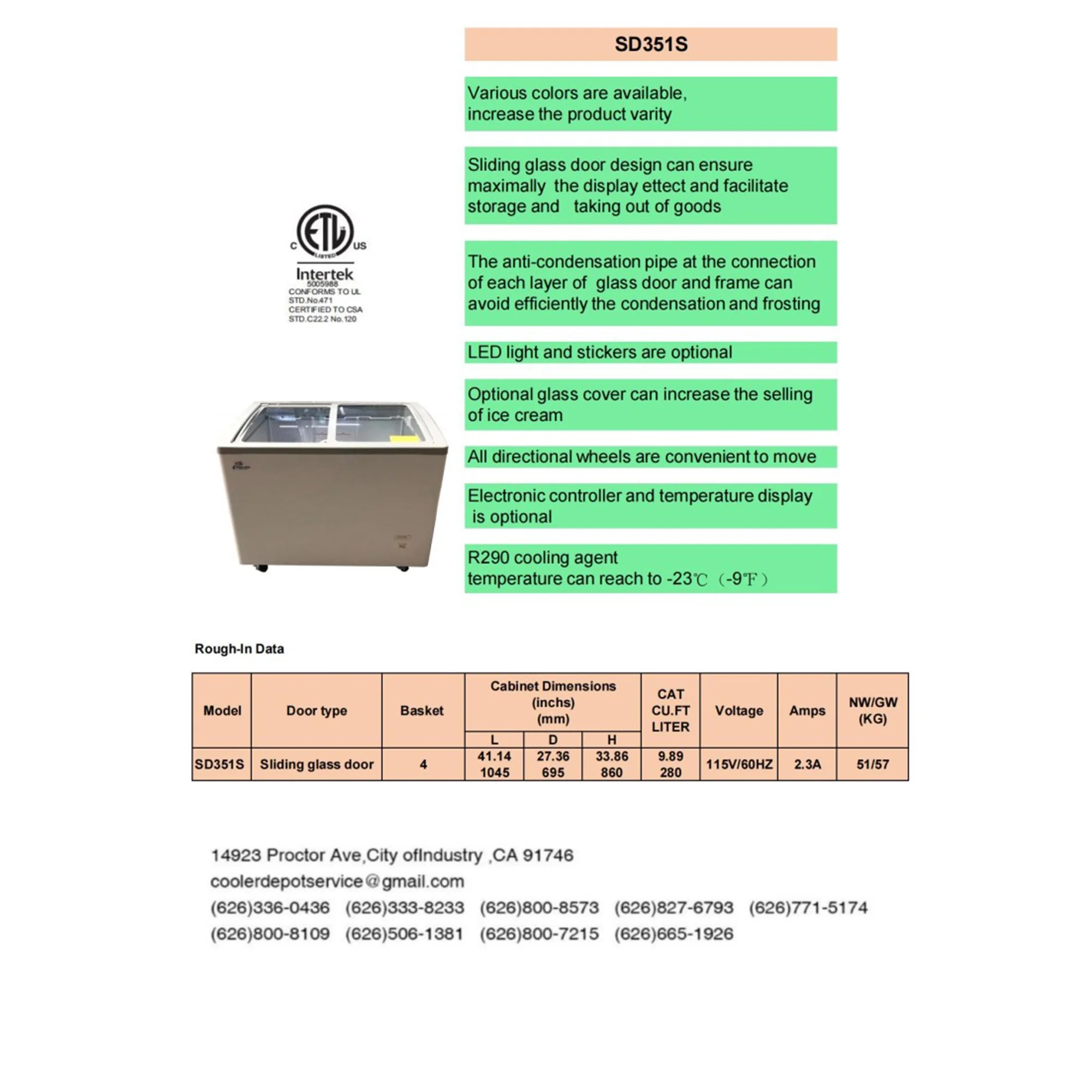 41 in. Ice Cream Chest Freezer, Commercial Ice Cream Display Freezer - 12 Cu. ft