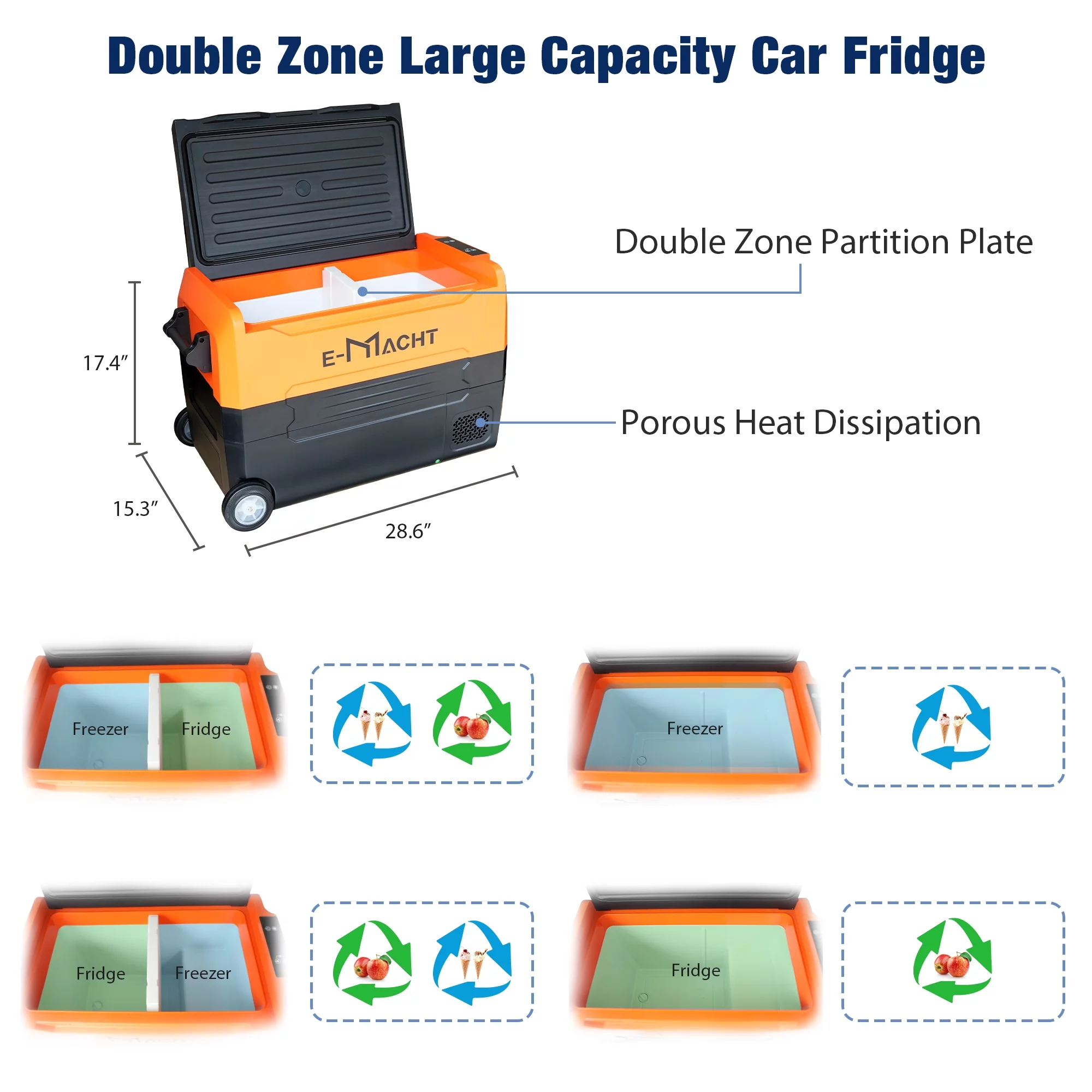 12Volt Portable Dual Zone Freezer Car Refrigerator ,42Quart WIFI APP Control RV Refrigerator,Electric Fridge Cooler with LED light,-4°F∽ 68°F,12/24V DC,For Camping,Outdoor,Travel
