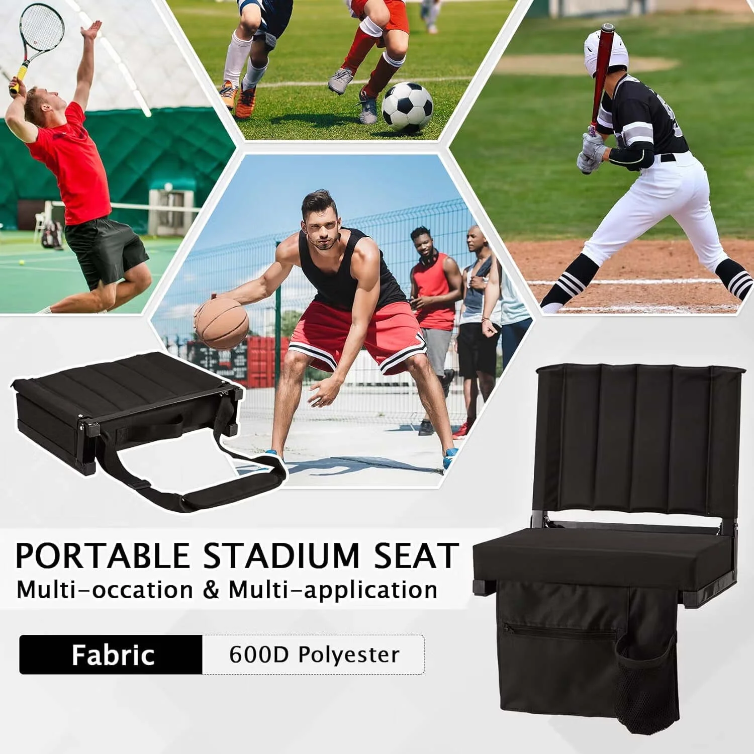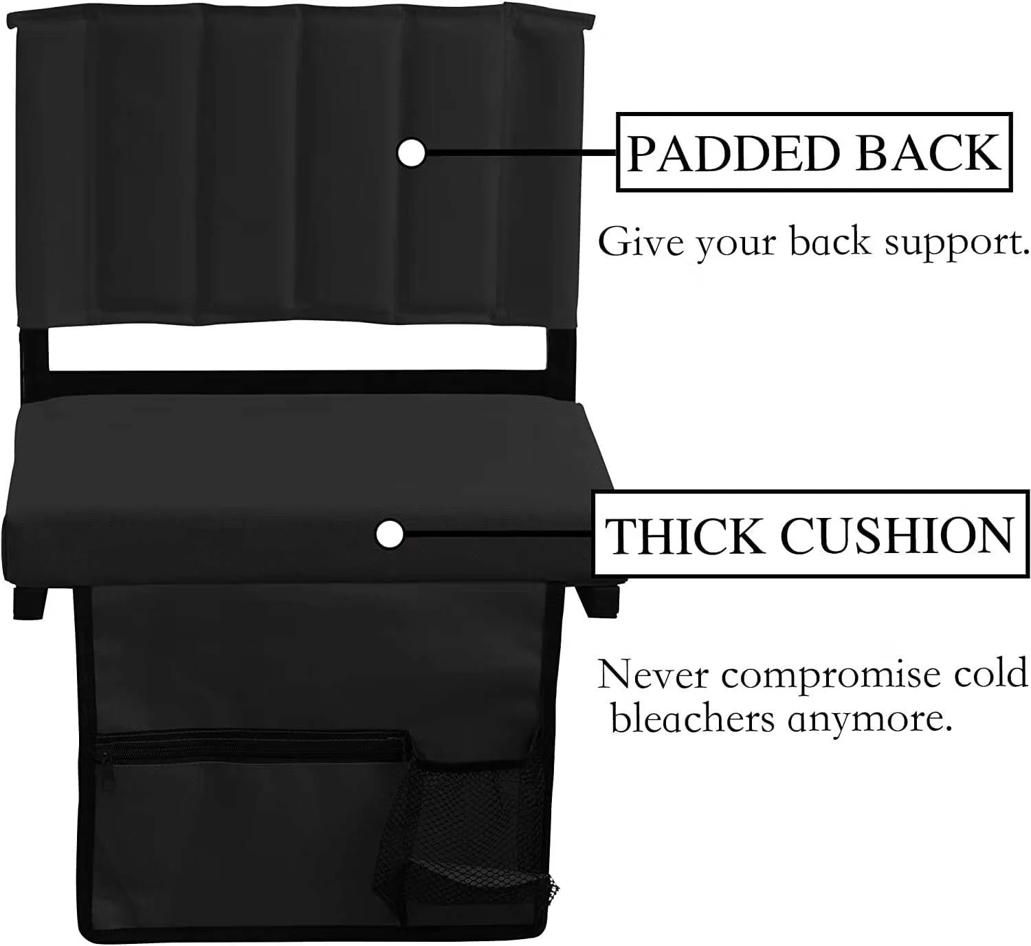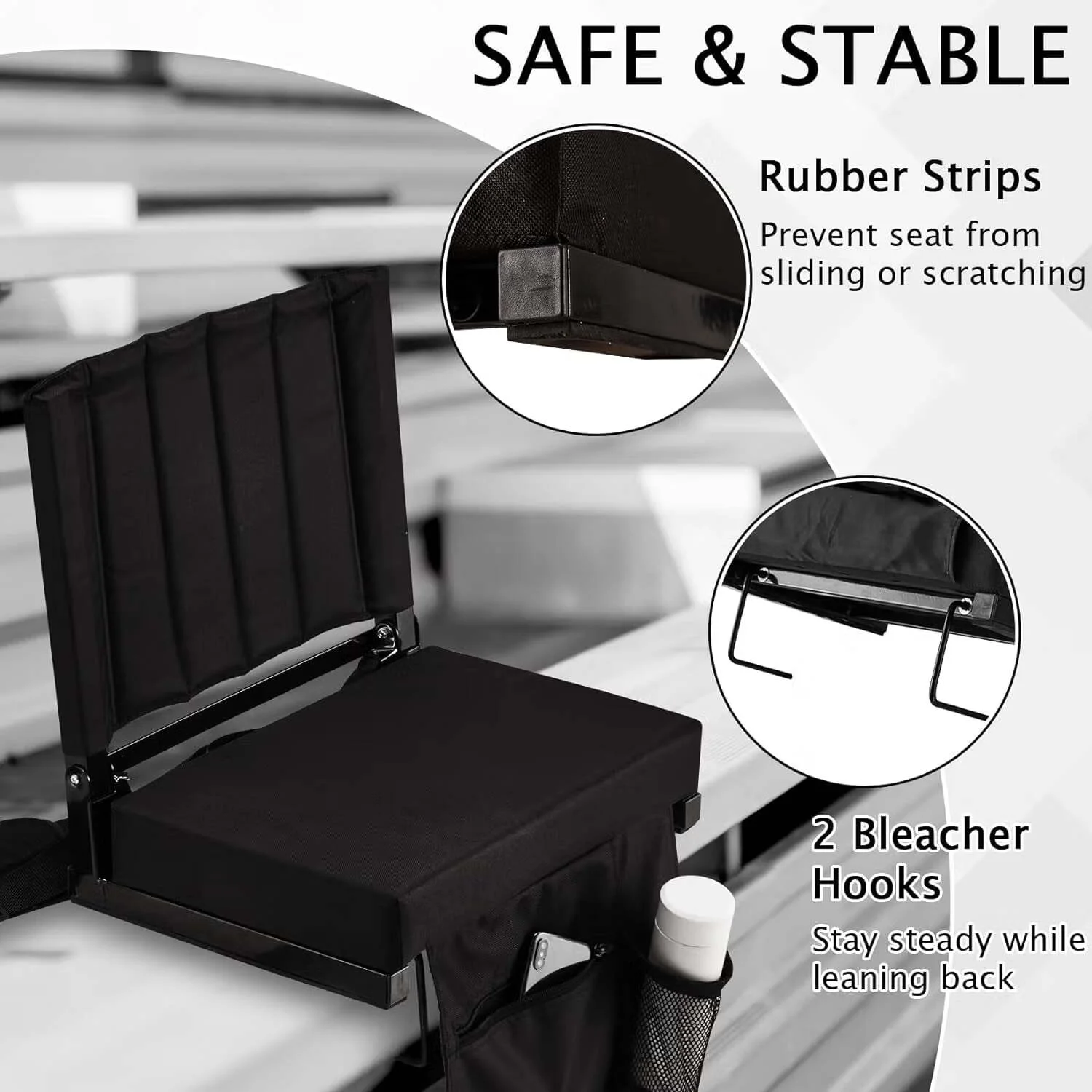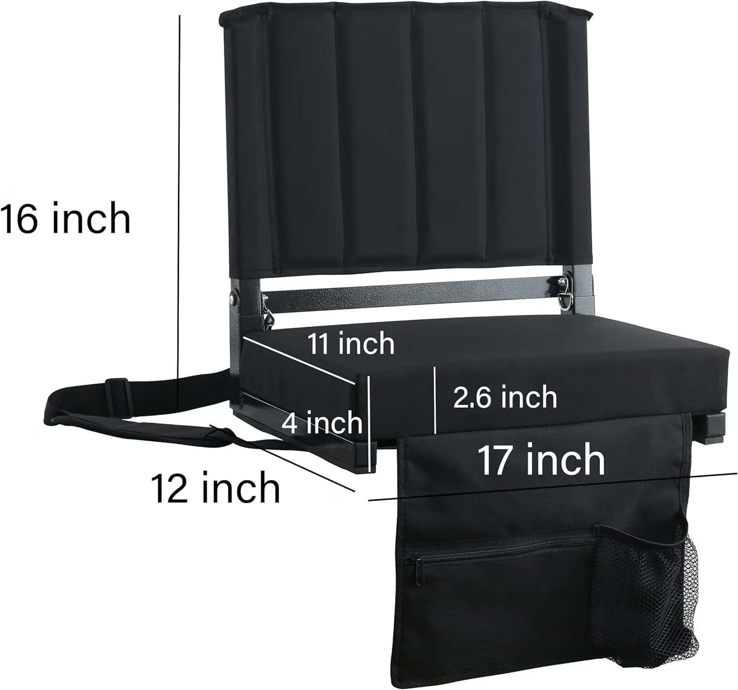Amazingforless Stadium Seat for Bleachers with Padded Cushion Foldable Stadium Chairs with Strap and Cup Holder -Black