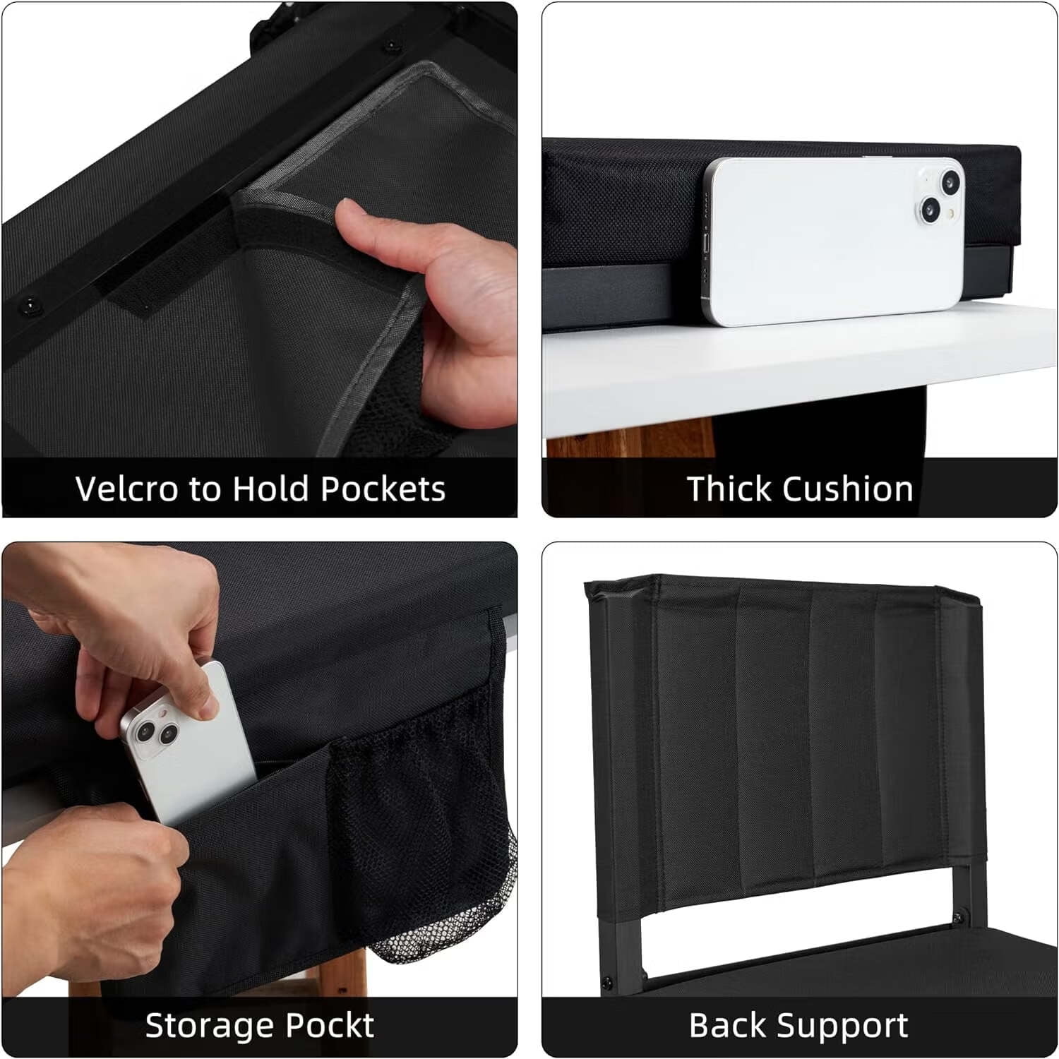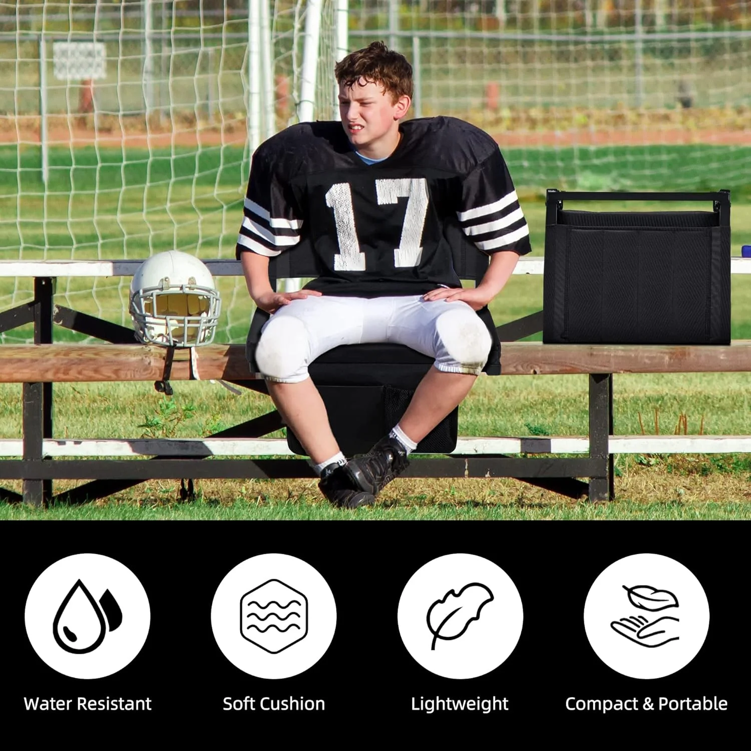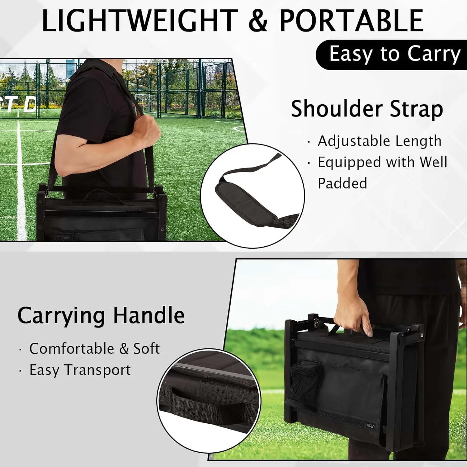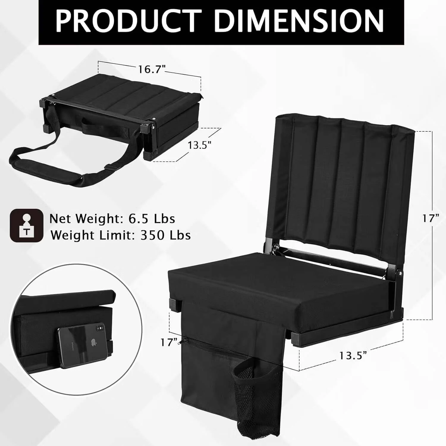 Amazingforless Stadium Seat for Bleachers with Padded Cushion Foldable Stadium Chairs with Strap and Cup Holder -Black