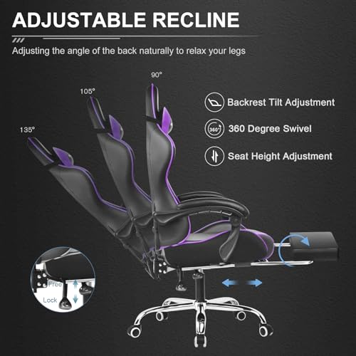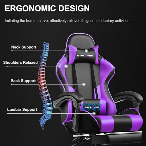 GTPLAYER Gaming Chair, Computer Office Chair with Pocket Spring Cushion, Linkage Armrests and Footrest, High Back Ergonomic Computer Chair with Lumbar Support Task Chair with Footrest
