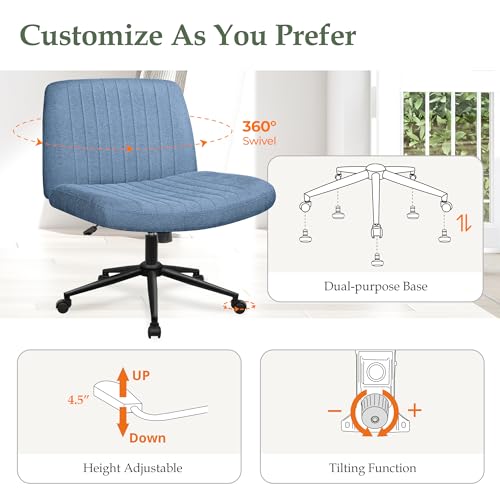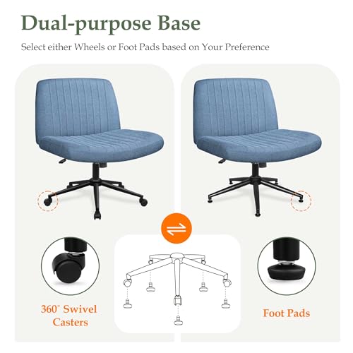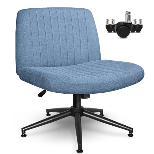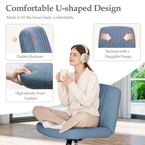 Orange Factory Criss Cross Chair with Wheels, Armless Cross Legged Office Desk Chair, Wide Comfy Vanity Rolling Swivel Modern Comfortable Fabric Computer Task Chairs for Home Office (Beige)