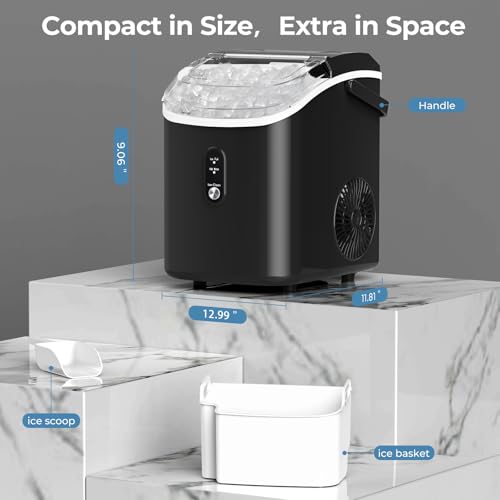 Nugget Ice Makers Countertop, 35Lbs/24H Portable Ice Maker Machine with Chewable Ice, Crushed Ice Makers Countertop with Self-Cleaning Function/Ice Scoop/Ice Basket for Home & Kitchen & Office(Black)