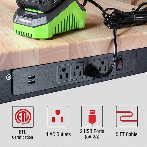 WORKPRO 48" Adjustable Workbench, Rubber Wood Top Heavy-Duty Workstation, 2000 LBS Load Capacity Hardwood Worktable with Power Outlets, for Workshop, Garage, Office, Home