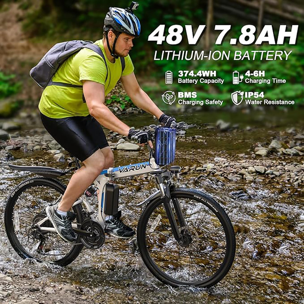 VARUN Electric Bike for Adults Foldable Ebike Peak 750W Motor, with 48V Removable Battery, up to 20+MPH 50 Miles, 21-Speed Gears & Dual Hydraulic Suspension