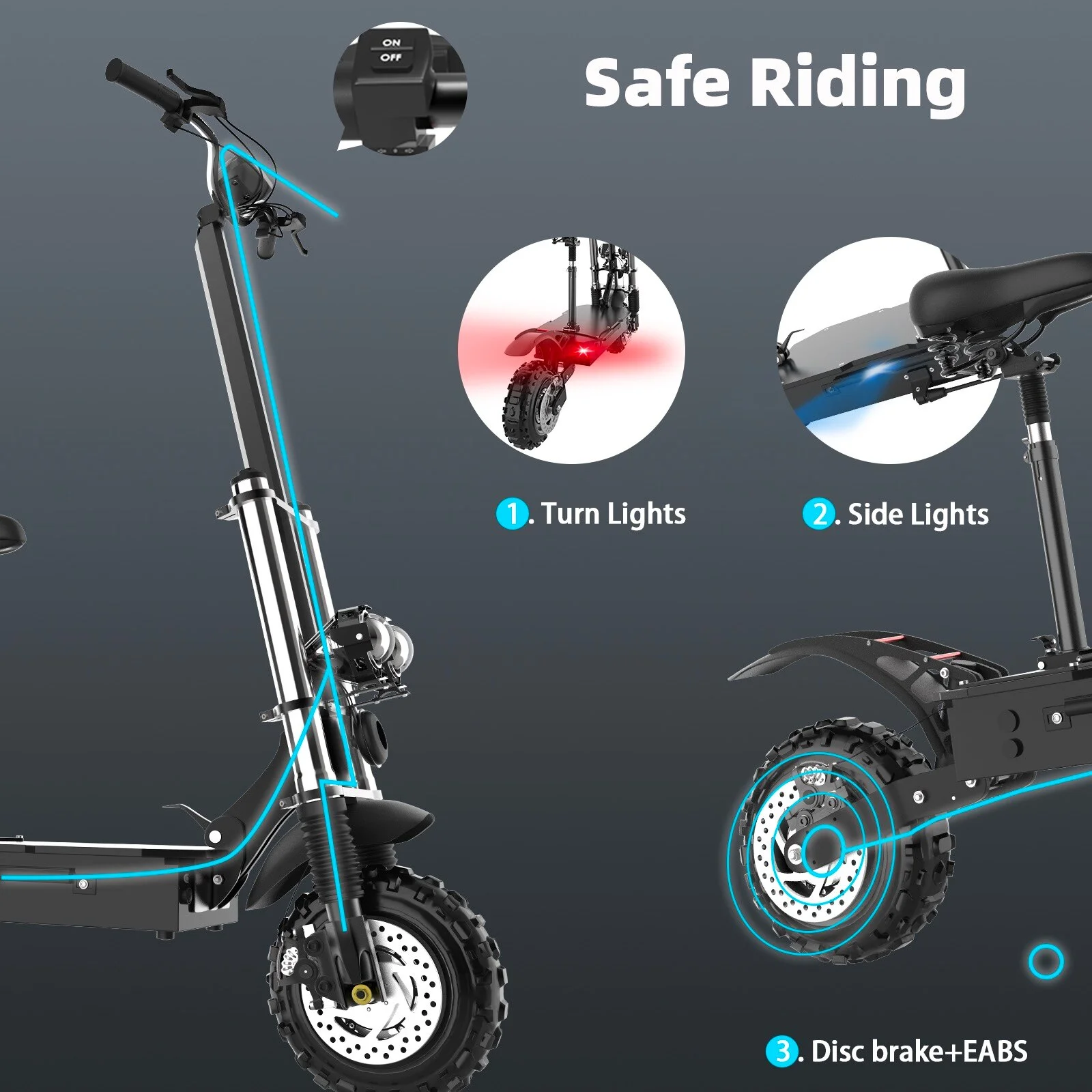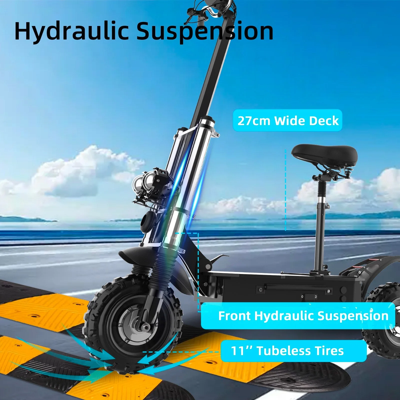 50MPH &60Miles ,Dual Motor Electric Scooter for Adults with Seat ,60V 5600W ,11 inch Off-Road Tire