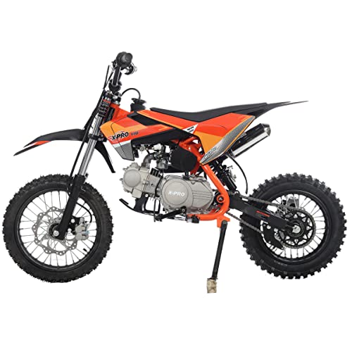 X-PRO 110cc Dirt Bike with Semi-Automatic Transmission, Kick Start, Big 14"/12" Tires! (Orange)