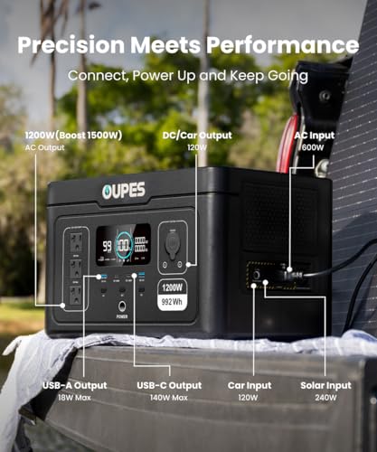 Oupes Exodus 1200 Portable Power Station 1200W (Surge 3600W), 992Wh LiFePO4 Solar Generator with Smart App Control, UPS, 140W USB-C, for Outdoor & Emergency Backup