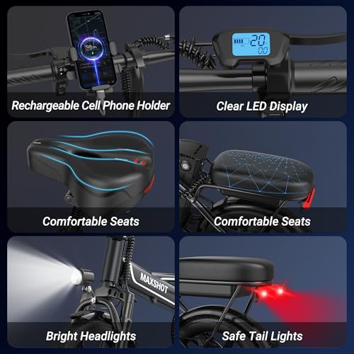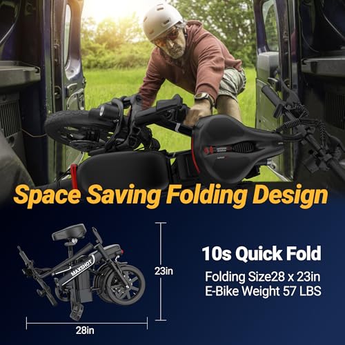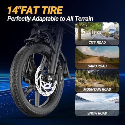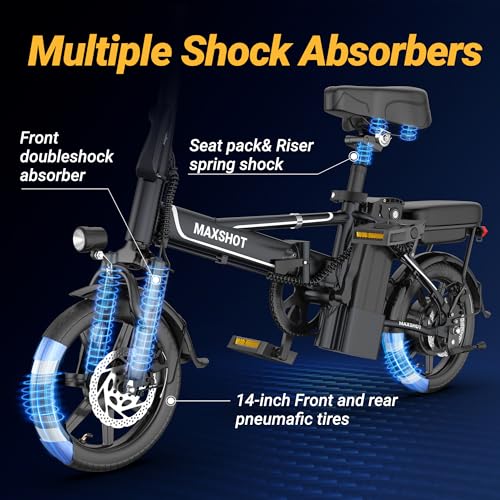 Electric Bike for Adults,14" Folding Ebike with Peak 750W Motor,Max 28/40 Miles Ranges up to 22 MPH.ebike with 499.2/749WH Removable Battery, Front & Rear Suspension