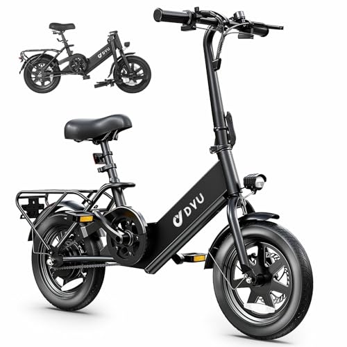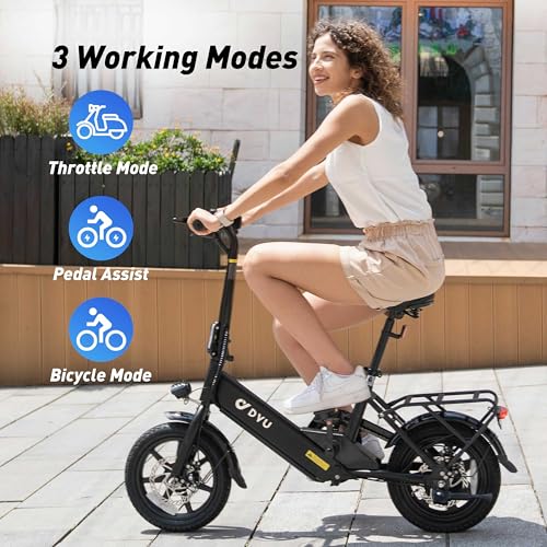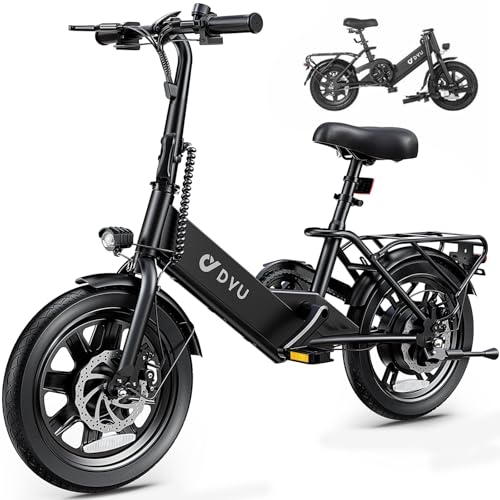 DYU Electric Bike for Adults Teens, Folding Electric Bicycle,Commuter City E-Bike with 350W Motor and 36V 7.5Ah Battery,3 Levels Assist, Dual Disc Brakes,14/16" Foldable ebike with Pedals
