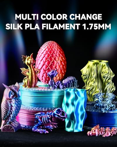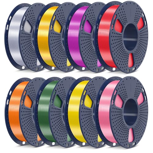 SUNLU 3D Printer Filament Bundle, PLA Silk Rainbow Filament Multicolor, Fast Color Change Each 8 Meters, Individually Vacuum Packed, 250g Spool, 8 Rolls, 2kg Total, 6 Silk Rainbow+Light Gold+Silver