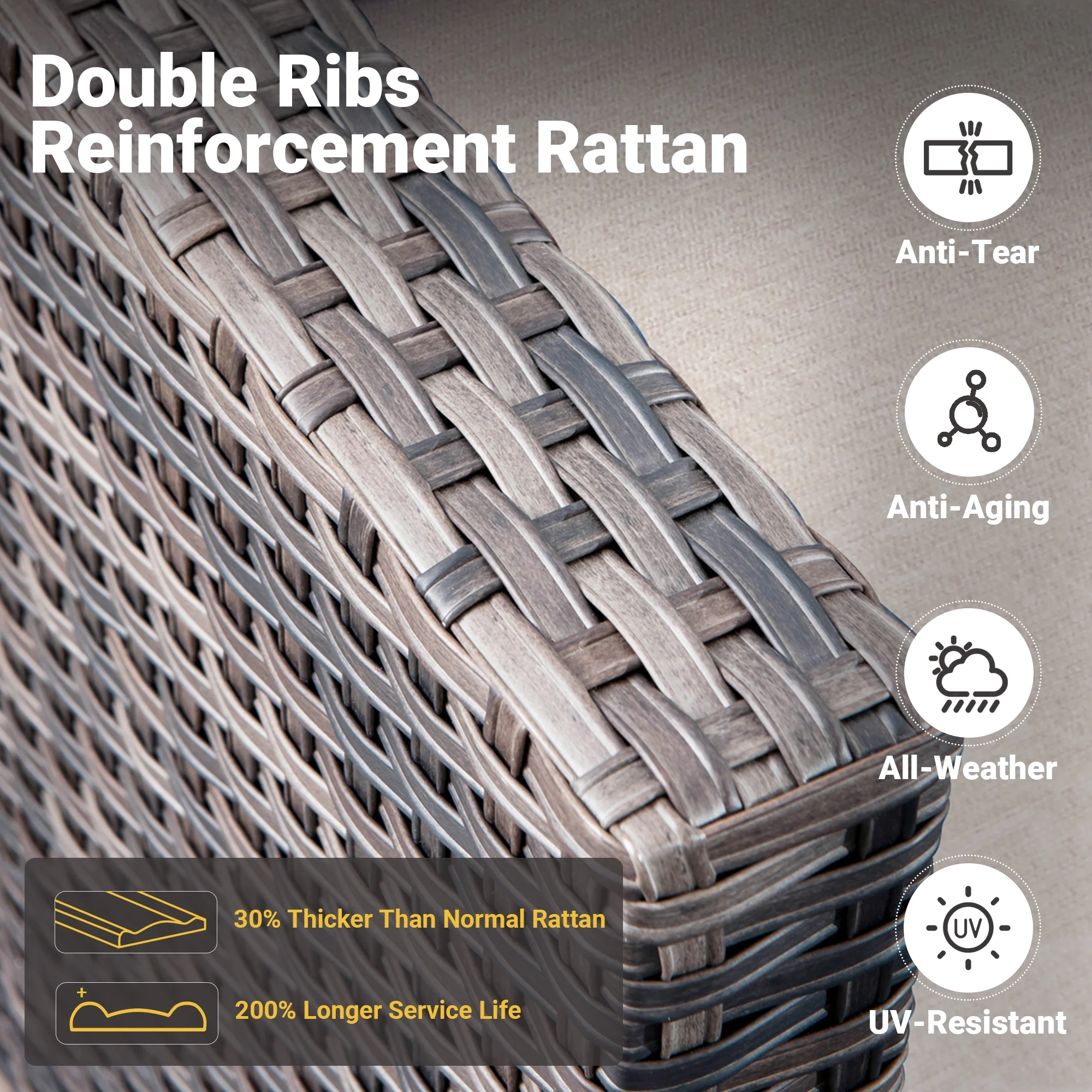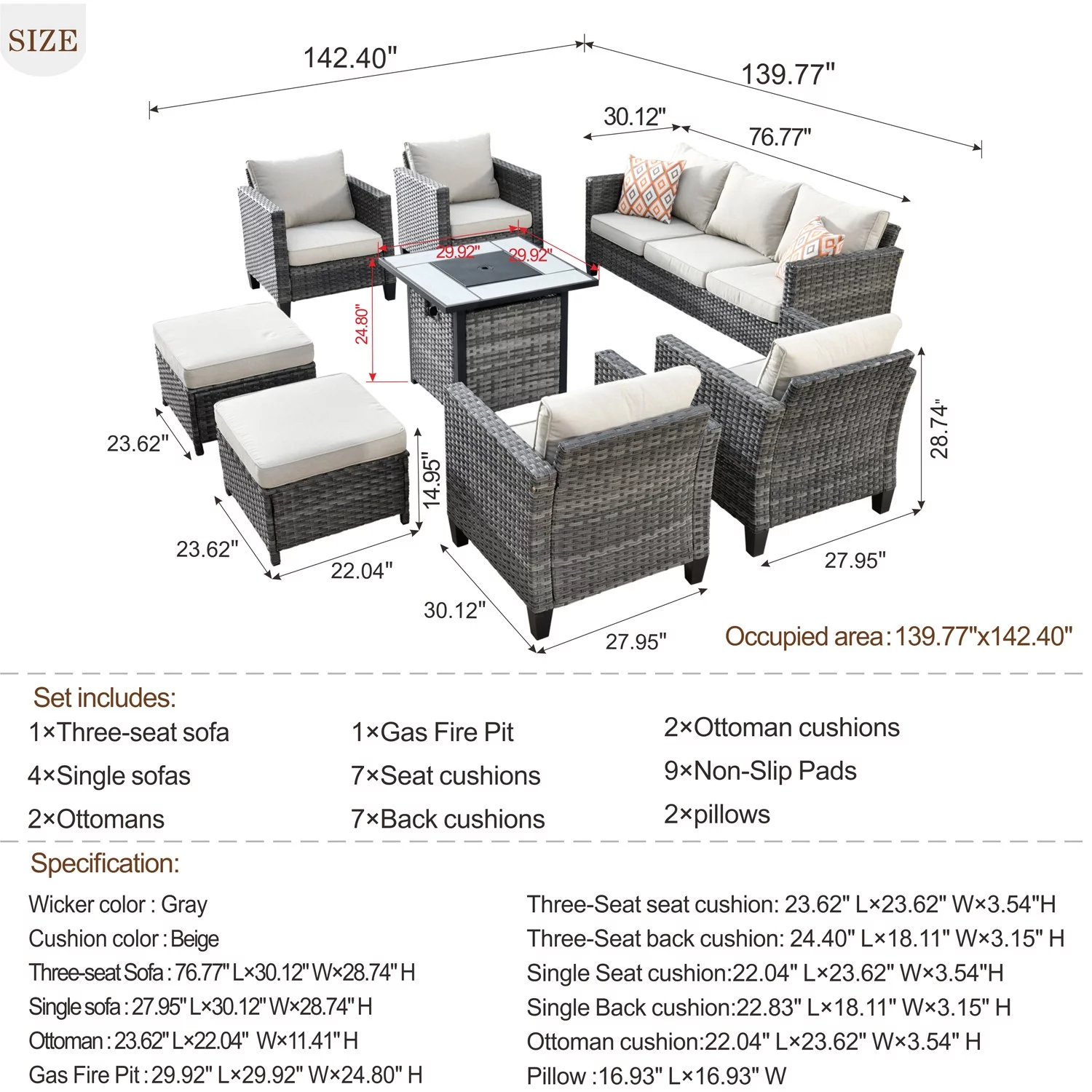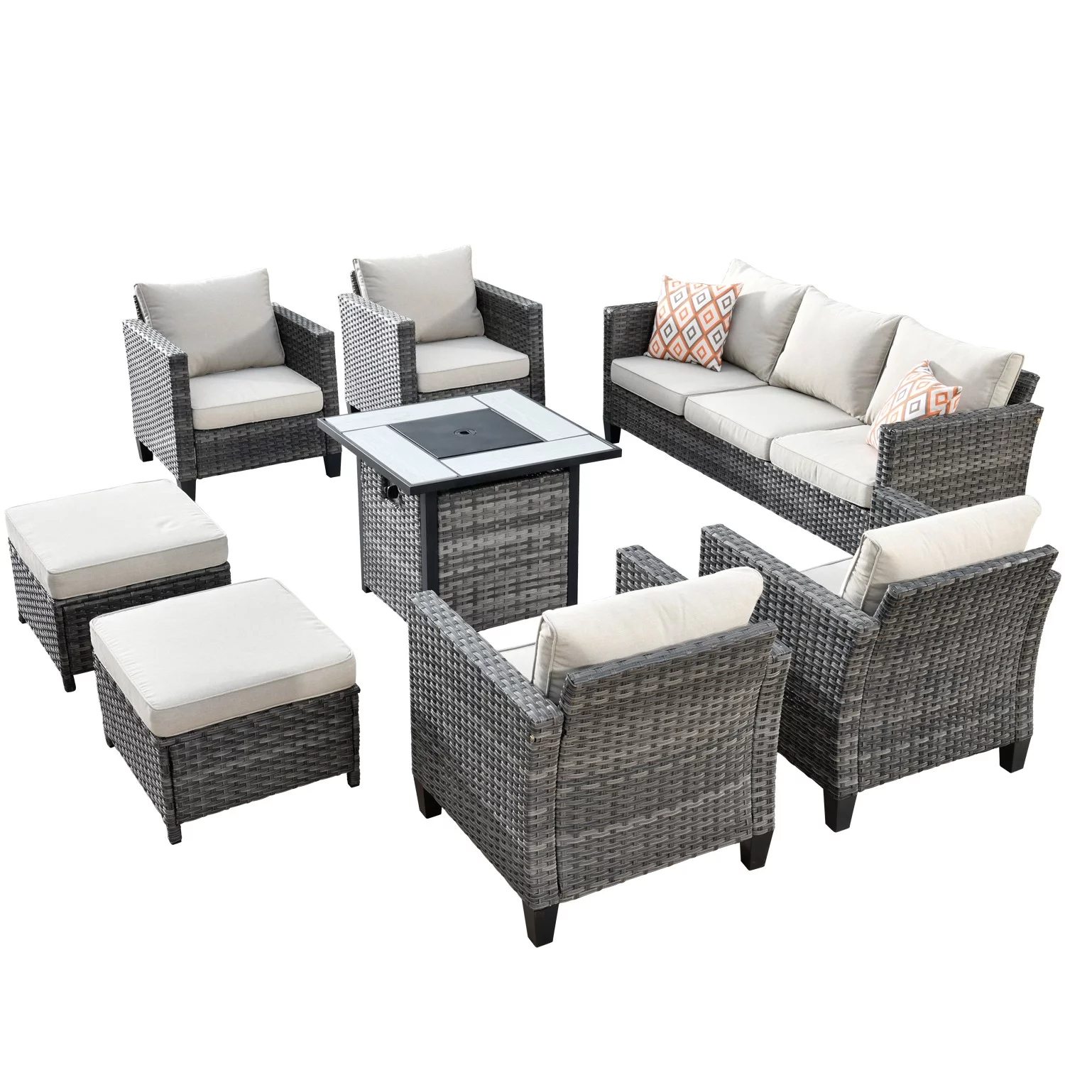 Ovios 8 Pieces Patio Outdoor Furniture Grey Conversation Set Outdoor Sectional Sofa with Gas Fire Pit CSA Approved