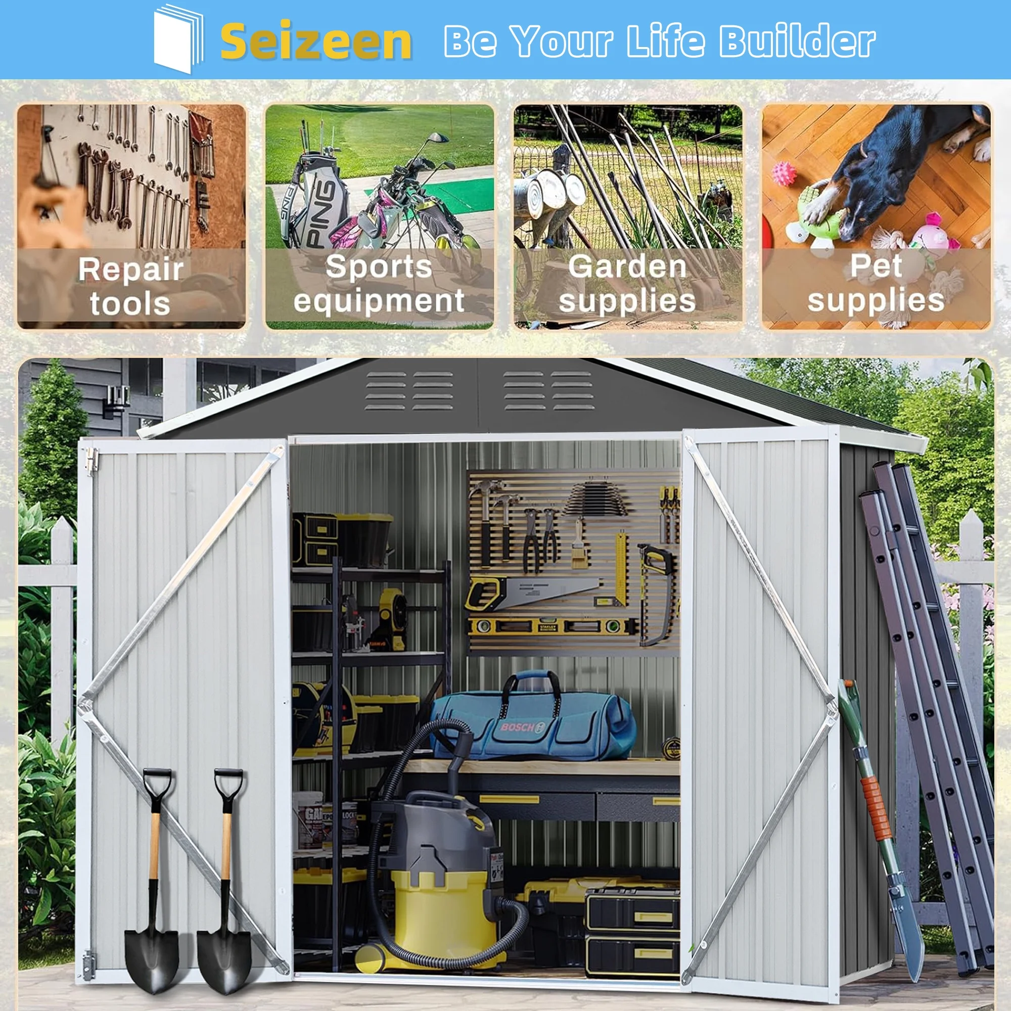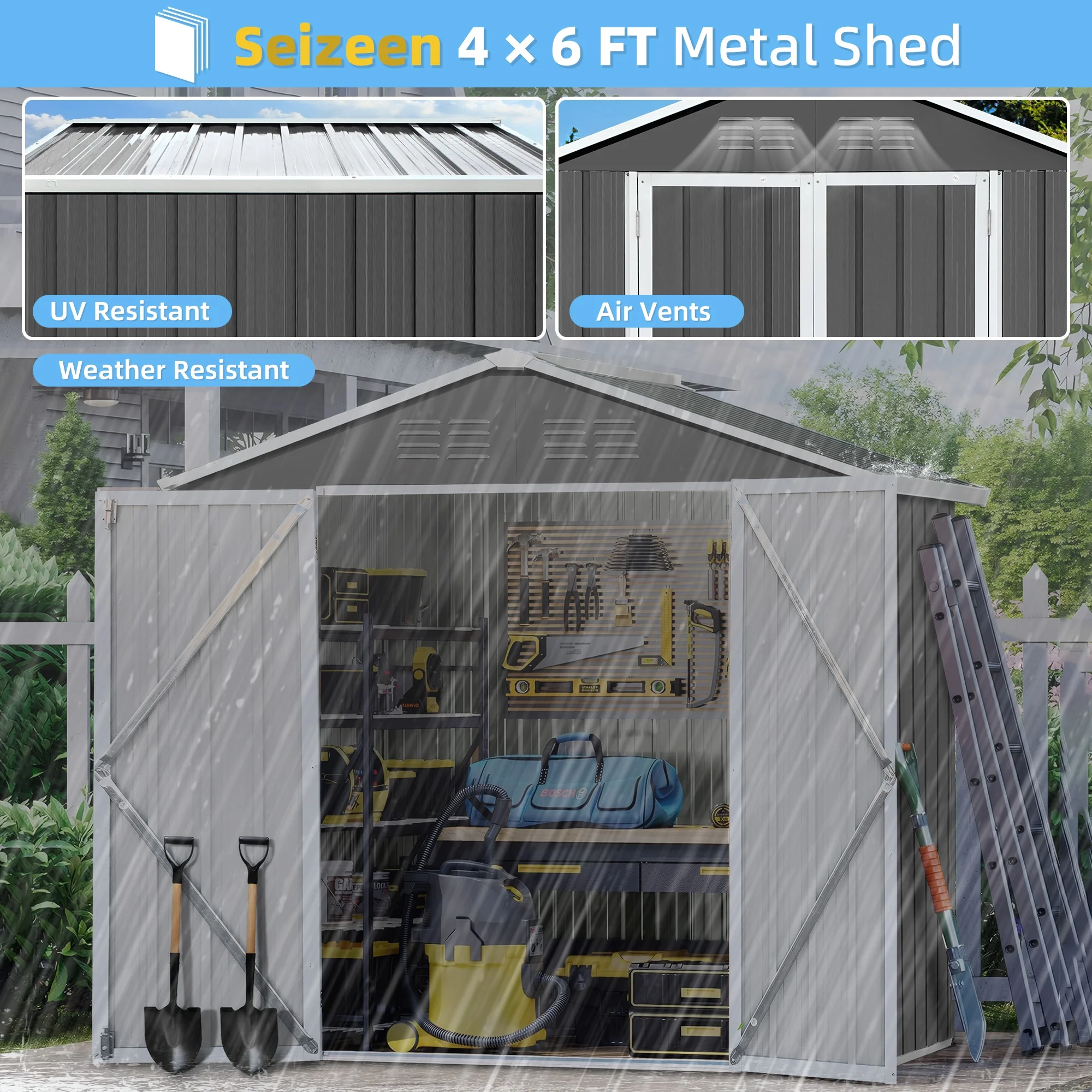 6' x 4' Outdoor Metal Storage Shed, Tools Storage Shed, Galvanized Steel Garden Shed with Lockable Doors, House Outdoor Storage Shed for Backyard, Patio, Lawn, D8311