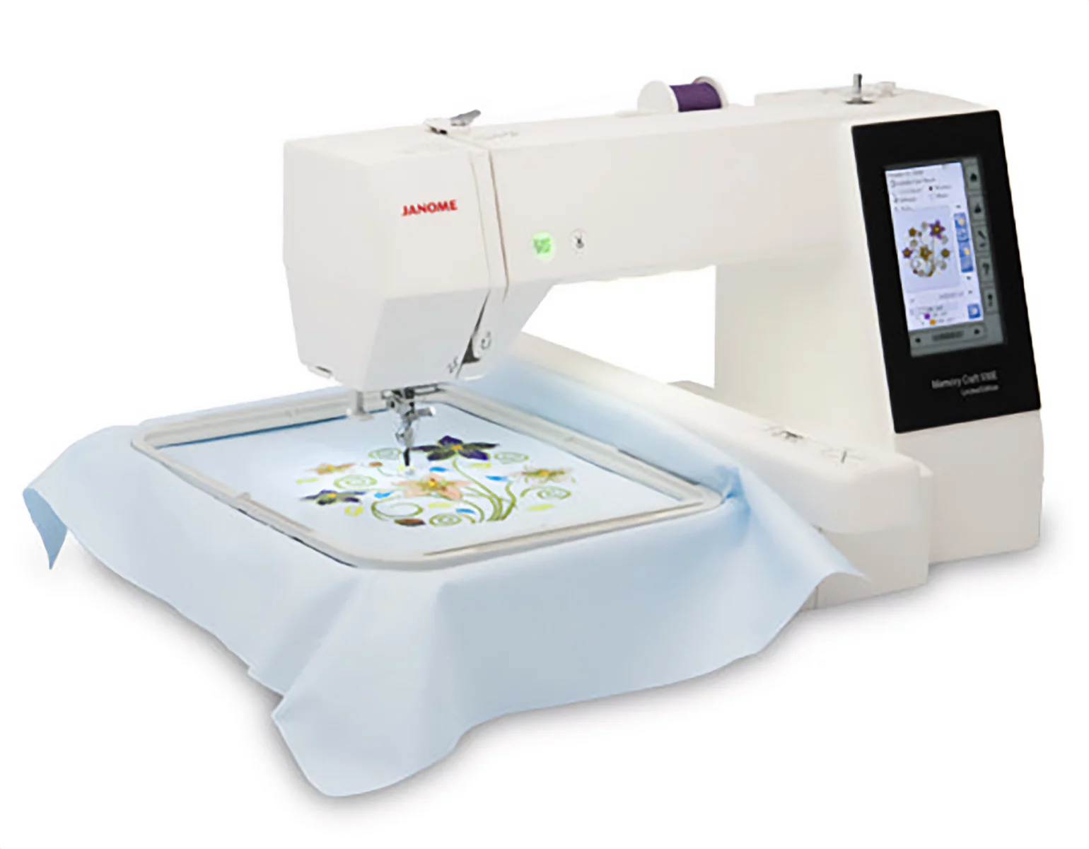 Janome Memory Craft 500E Limited Edition Computerized Embroidery Machine with Hat Hoop Bundle