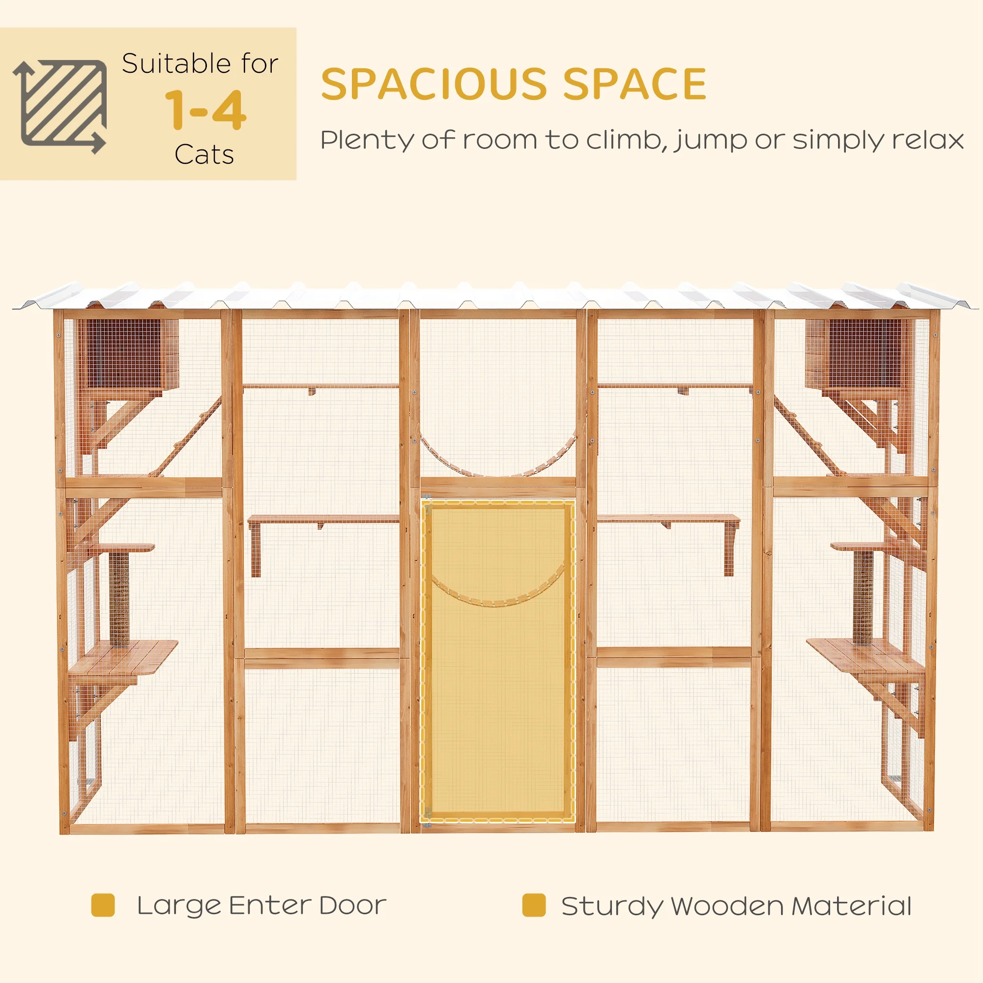 PawHut Catio Playground Outdoor Cat Enclosure Wooden Cat House Shelter
