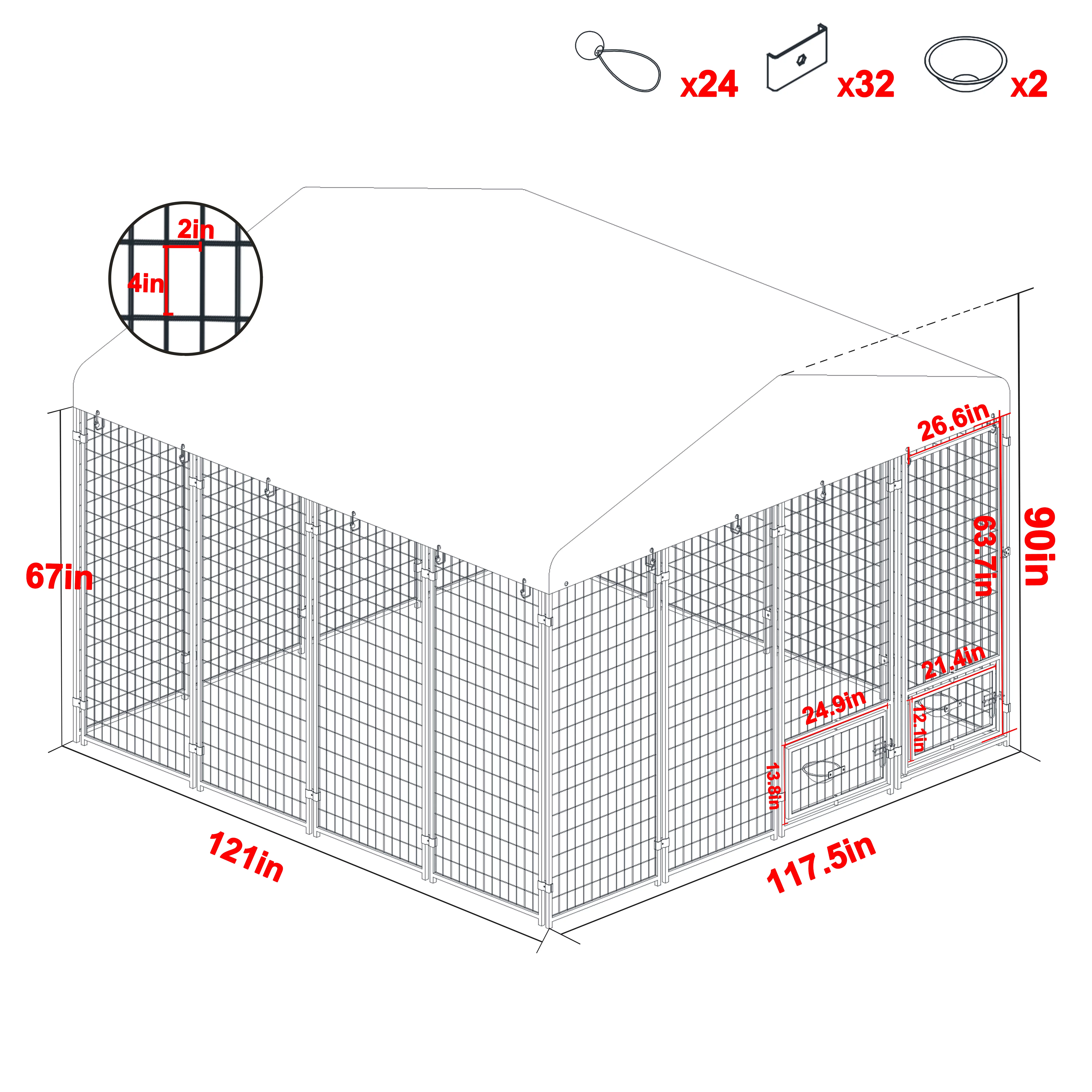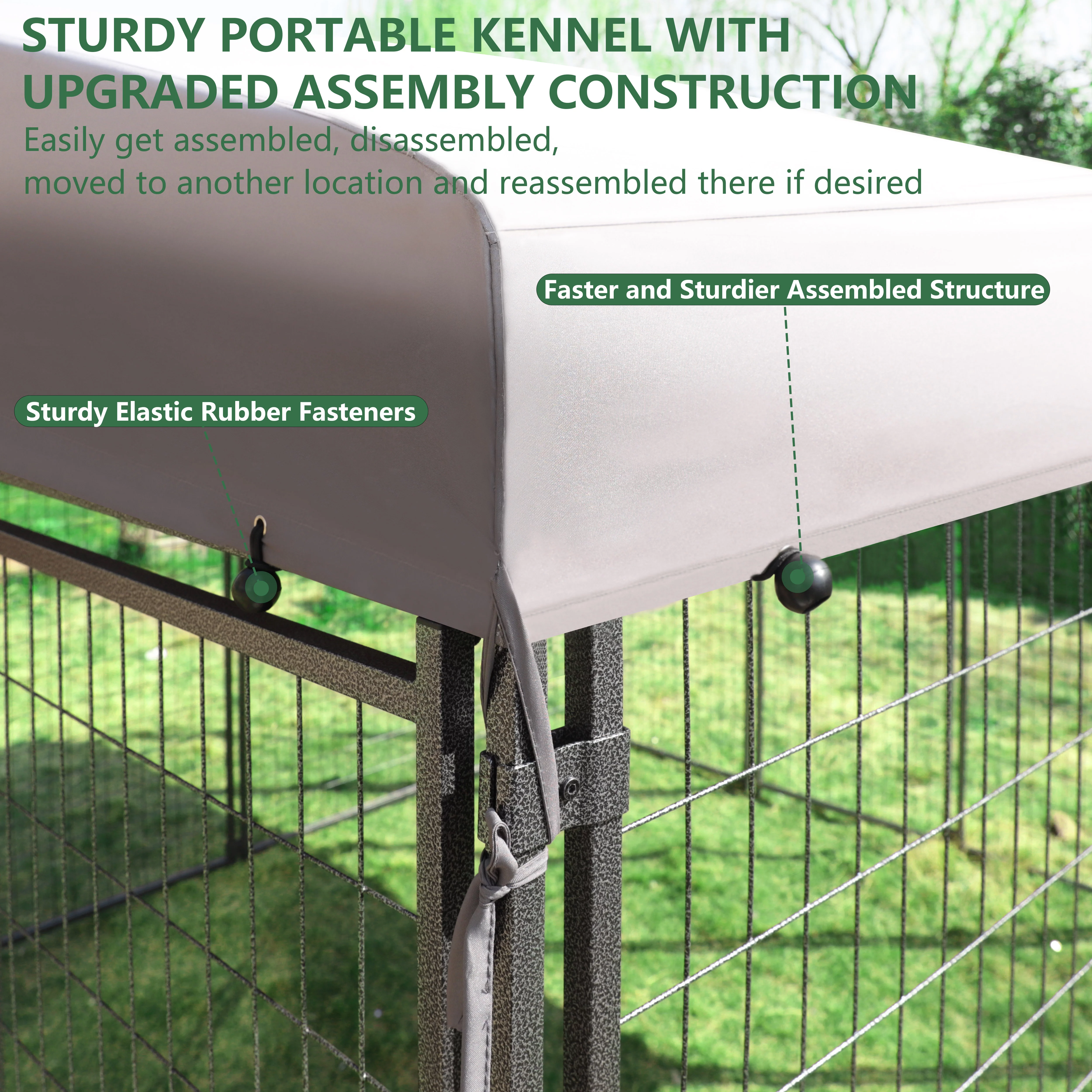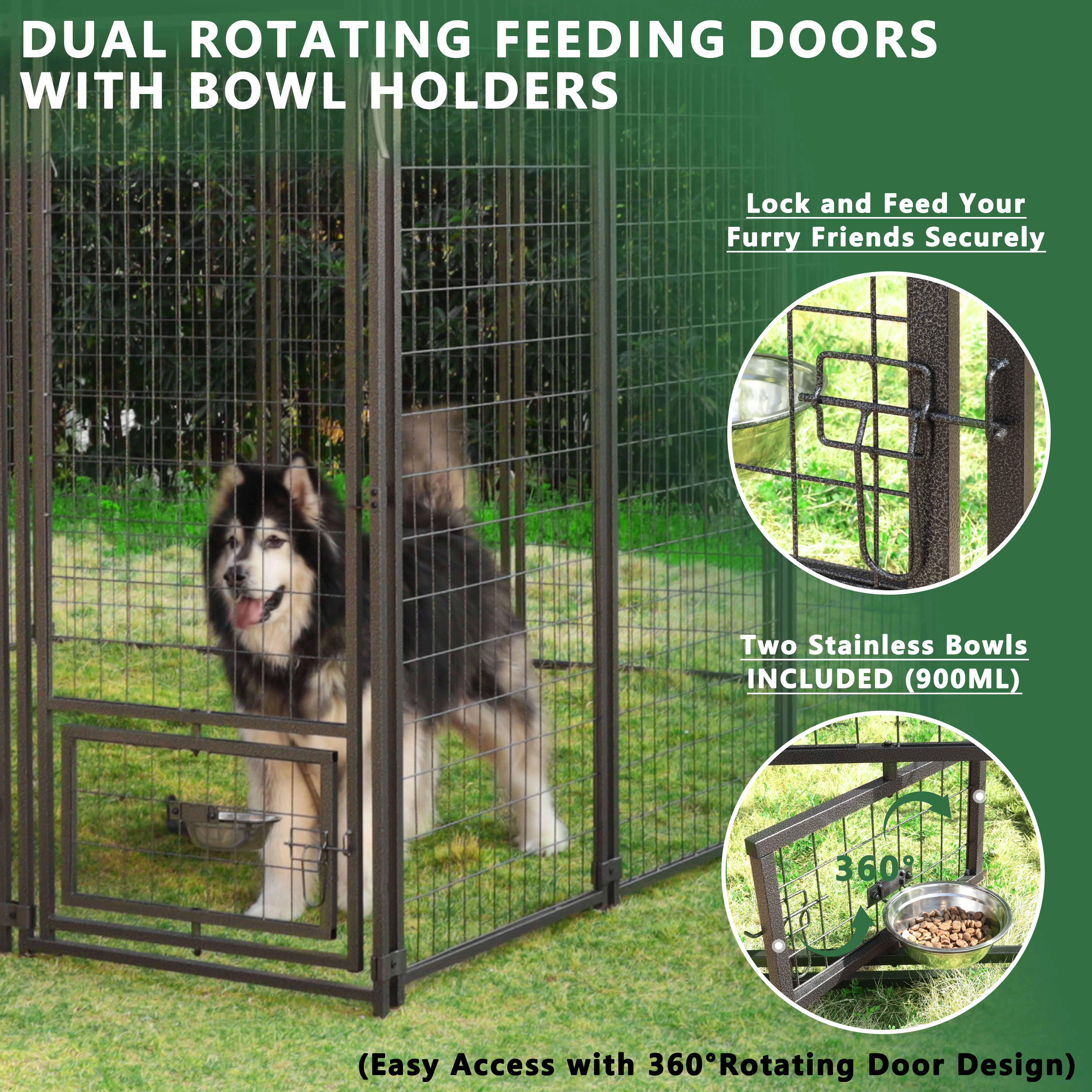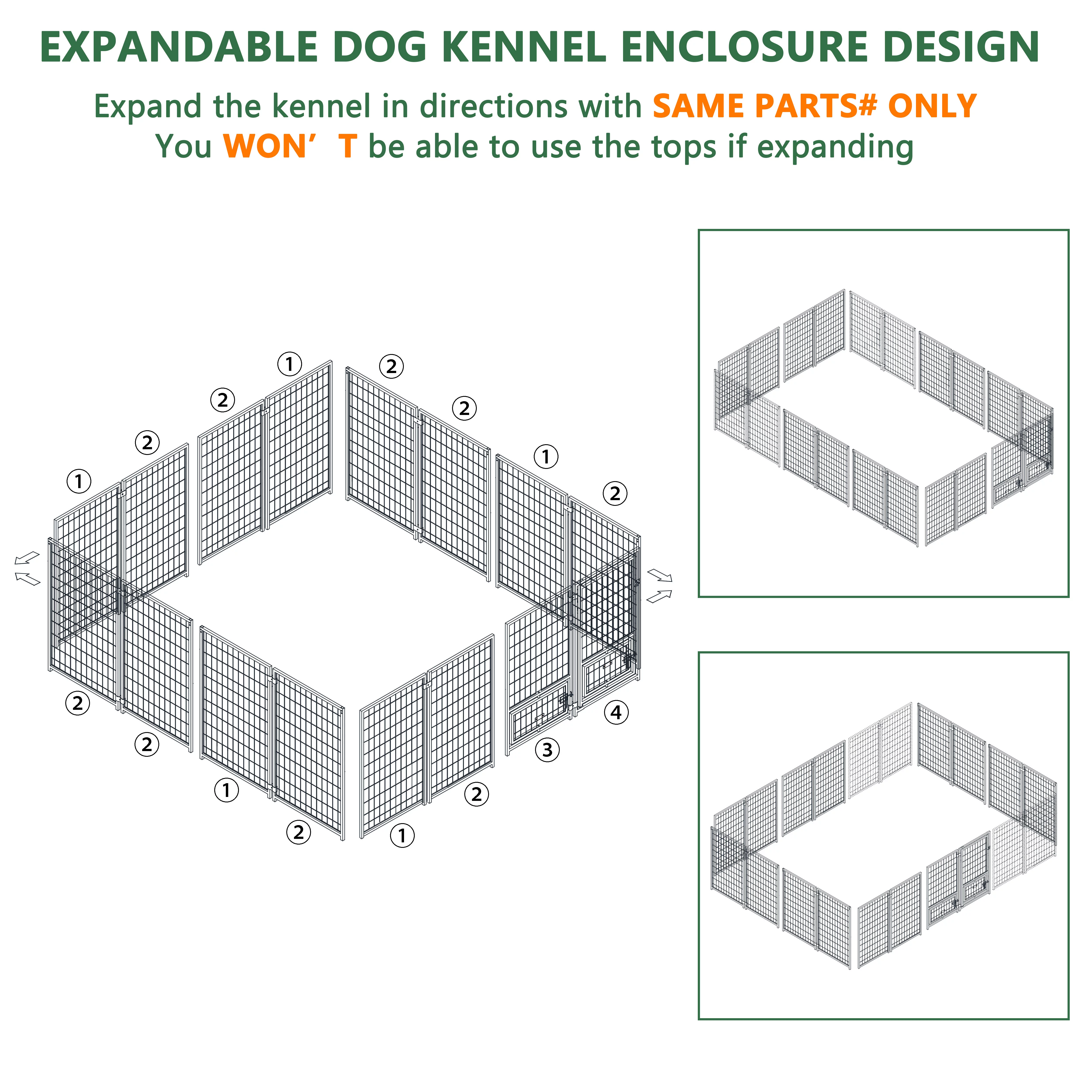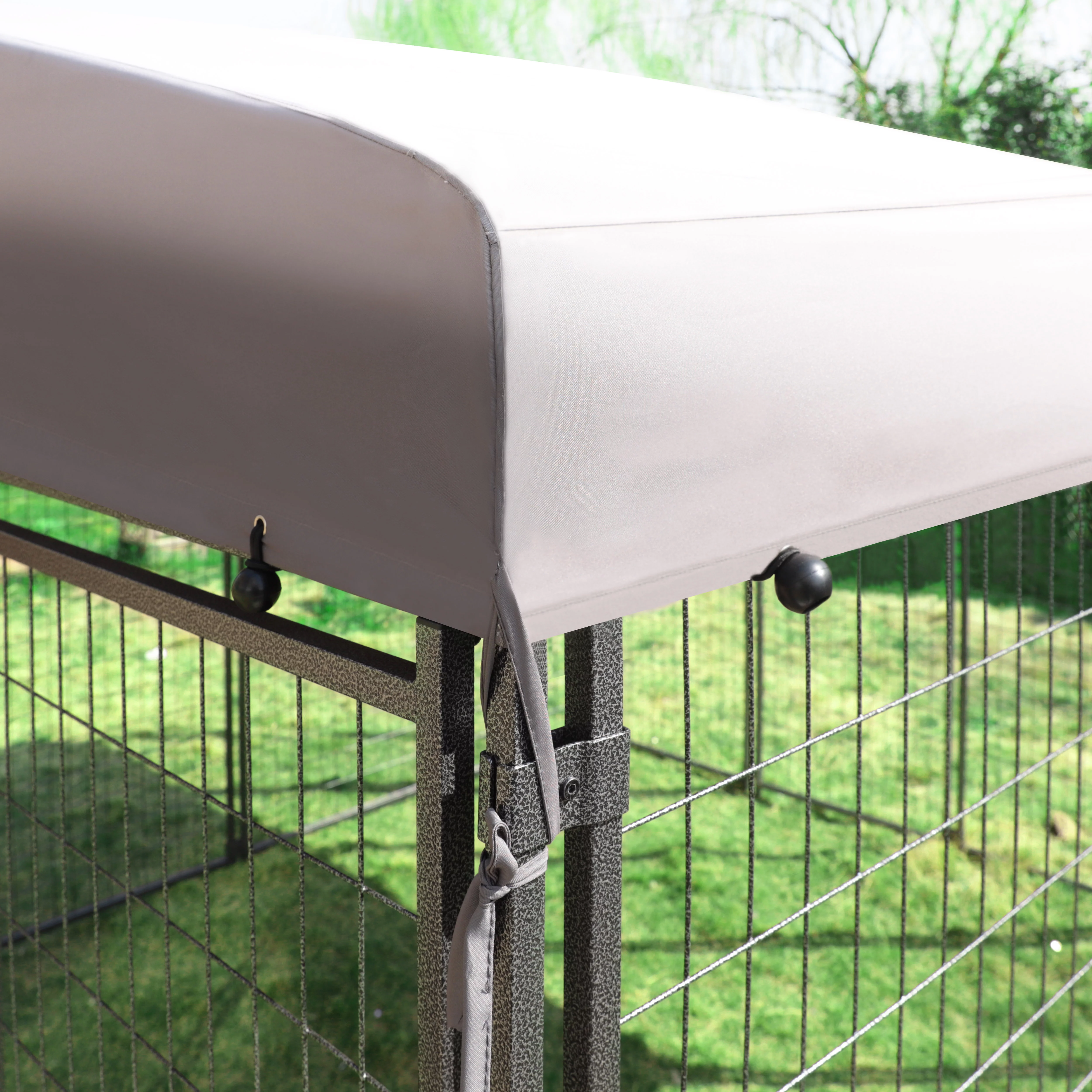 VEIKOUS 10x10 ft Outdoor Large Dog Kennel w/ Waterproof Canopy & 2 Bowls, Oversized Dog Crates for Yard, Lawn, Gray