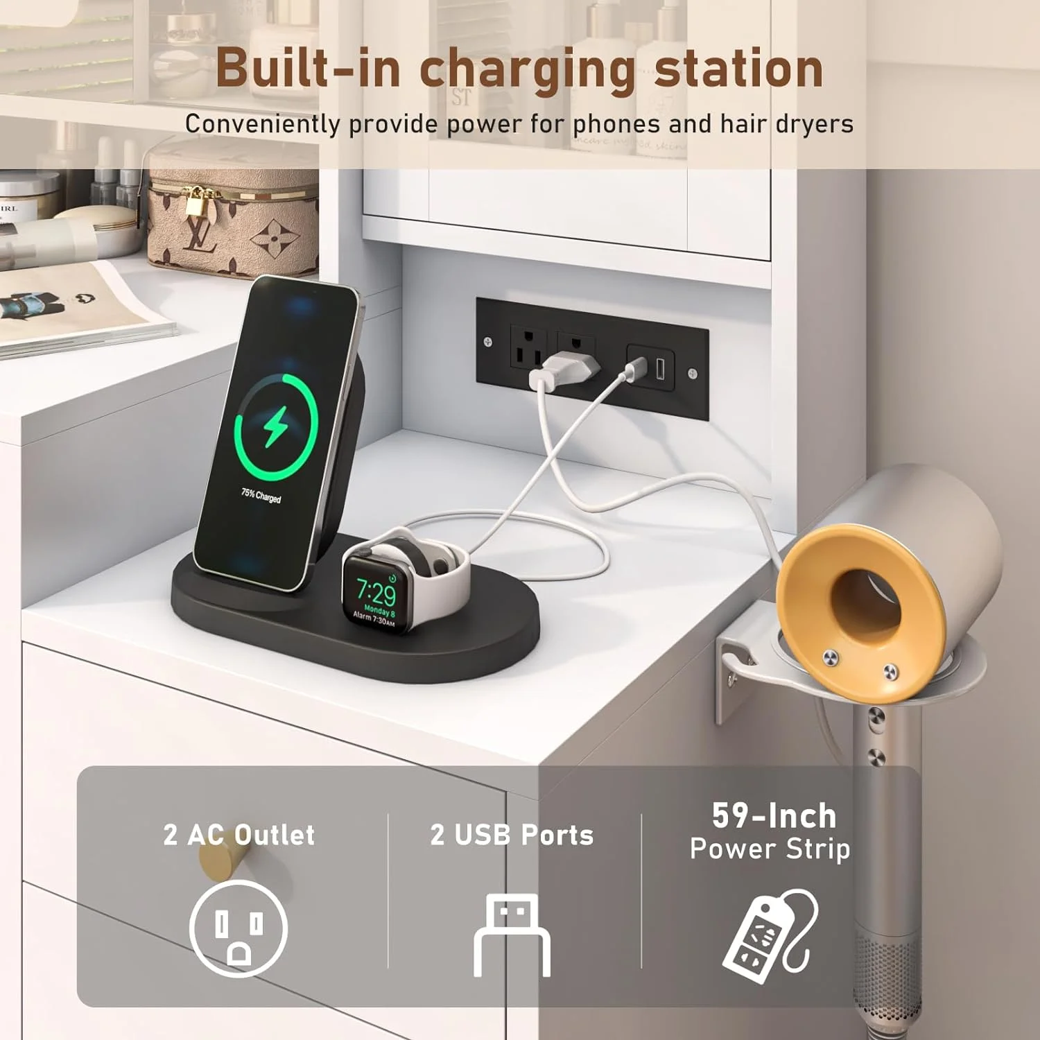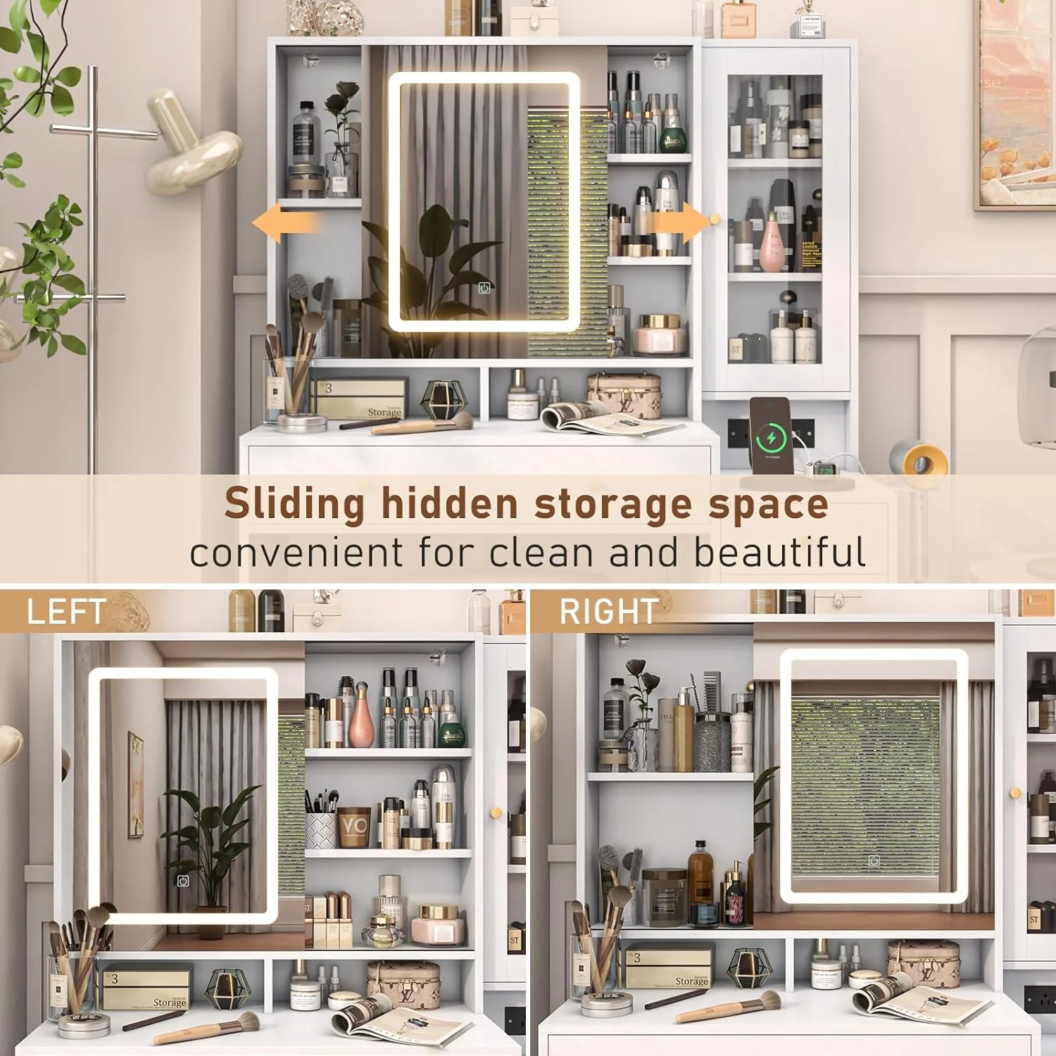 Weilianda Home Theater Seating Top Grain Leather Recliner Chair Dual Power Movie Gaming Sofa Electric Headrest with Tray Table Type-C USB Charge Cup Holders Row of 3 Black