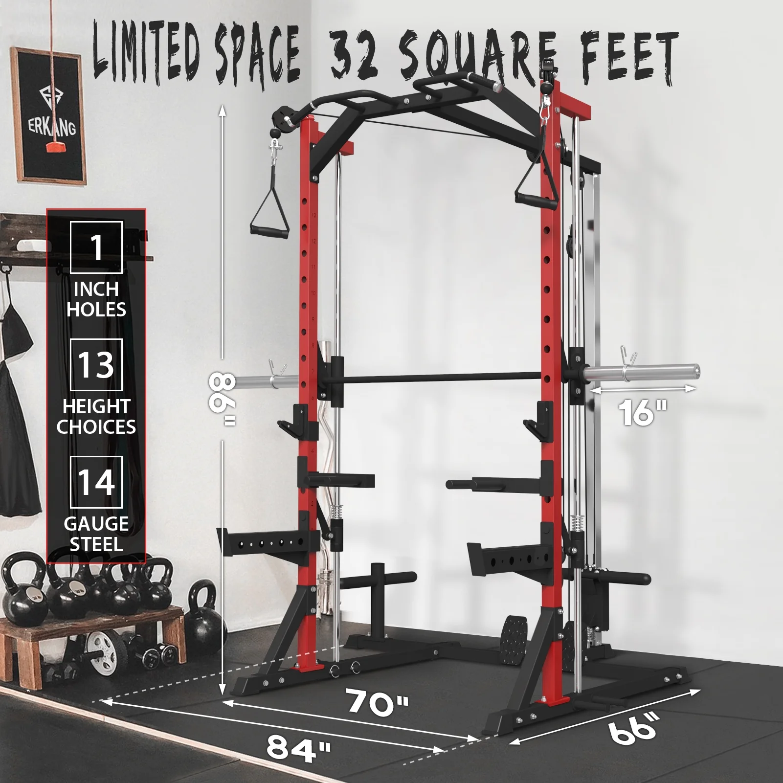 Mikolo Smith Machine Home Gym, Multi-Functional Squat Rack with Cable Crossover System, Workout station with Weight Bar, Dip Bars,Bend Peg and Other Functional Attachments