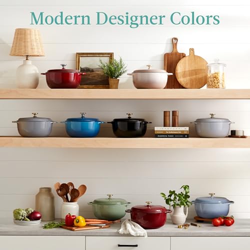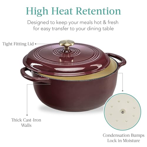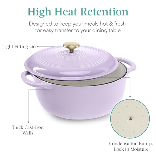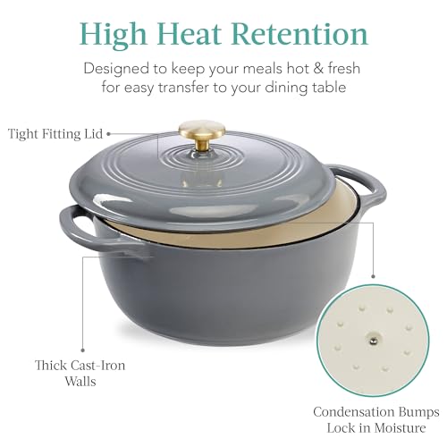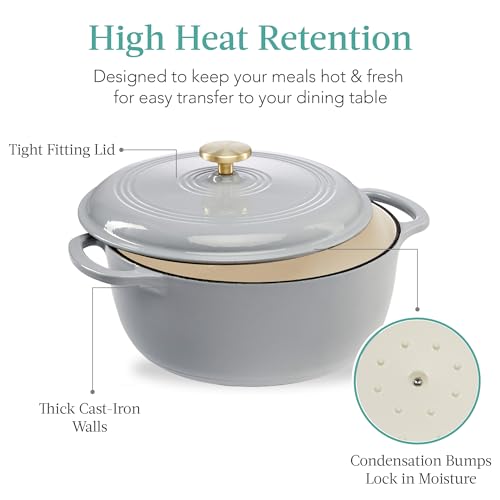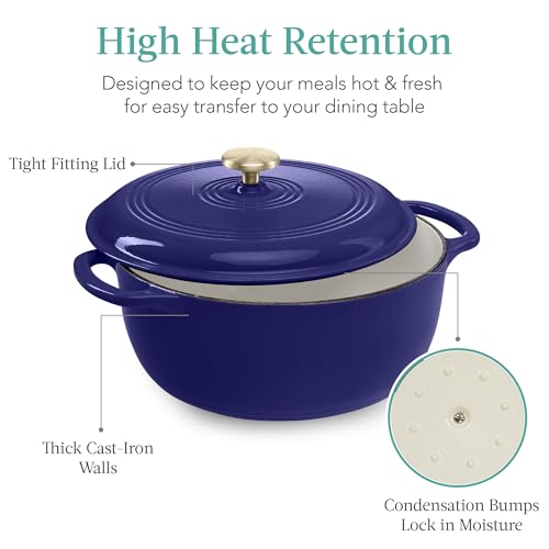 Best Choice Products 7.5 Quart Enamel Cast-Iron Round Dutch Oven, Family Style Heavy-Duty Pre-Seasoned Cookware for Home, Kitchen, Dining Room, Oven Safe w/Lid, Dual Handles - Cornflower Blue
