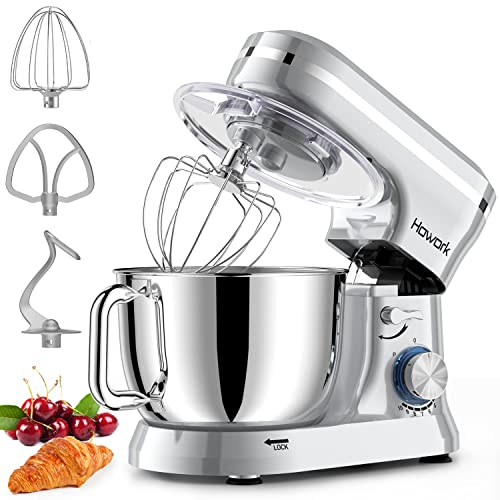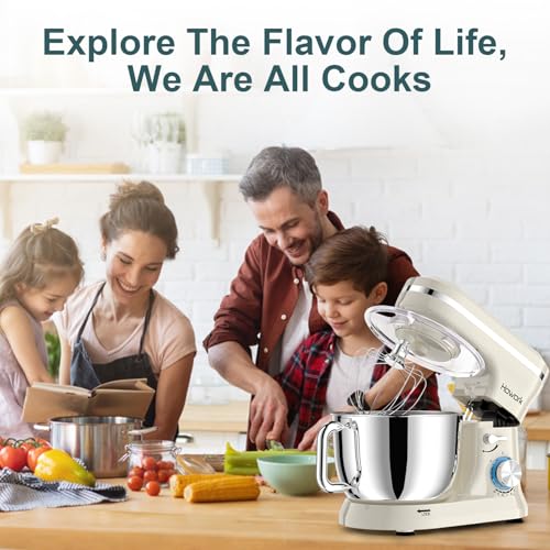 HOWORK Electric Stand Mixer,10+p Speeds With 6.5QT Stainless Steel Bowl,Dough Hook, Wire Whip & Beater,for Most Home Cooks,Blue