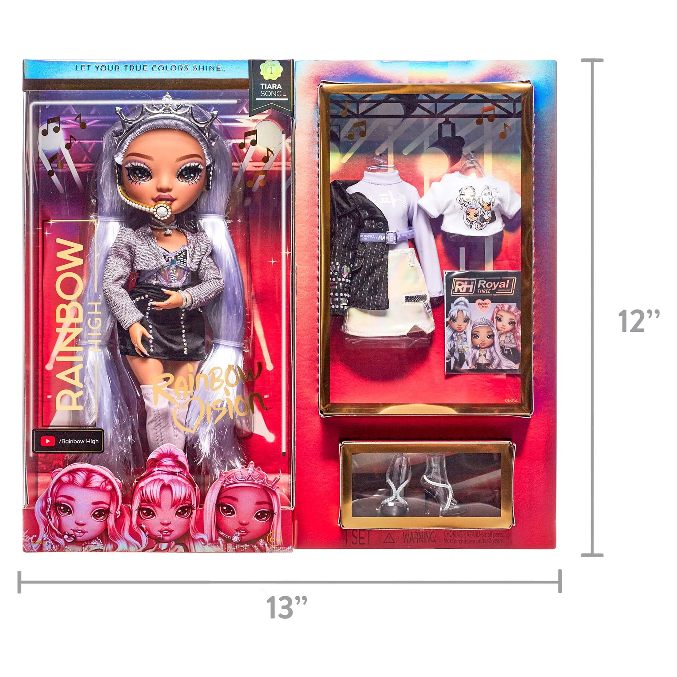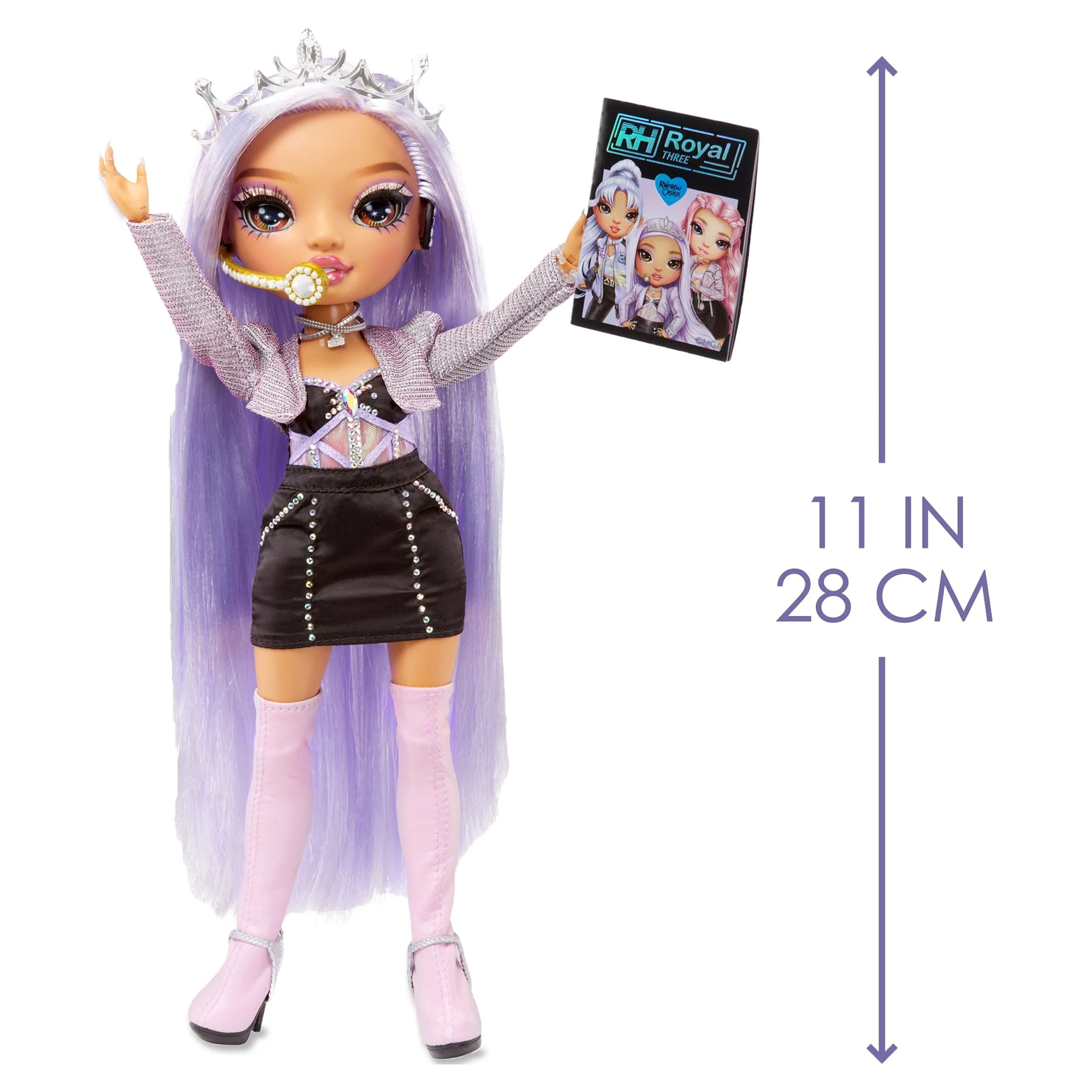 Rainbow High Rainbow Vision Royal Three K Pop – Tiara Song (Purple Lilac) Fashion Doll. 2 Designer Outfits to Mix & Match with Microphone Headset & Band Merch Playset, Gift for Kids 6-12 Years