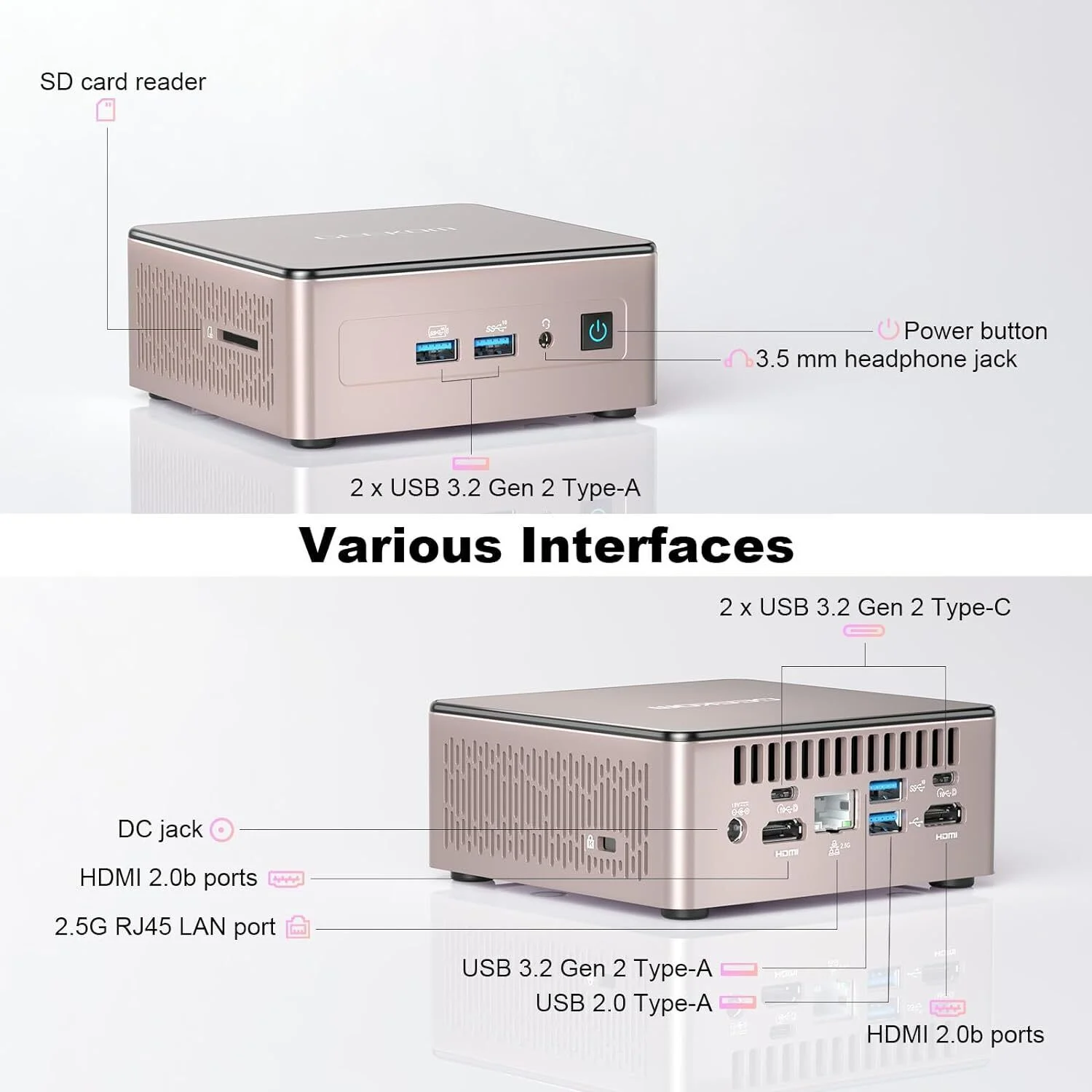 GEEKOM A5 Mini PC, AMD Ryzen 7 5800H(8C/16T, up to 4.4GHz), 32GB DDR4&512GB M.2 PCIe NVMe SSD, Vega 8 Graphics, Windows 11 Pro Desktop Computer Support 8K UHD