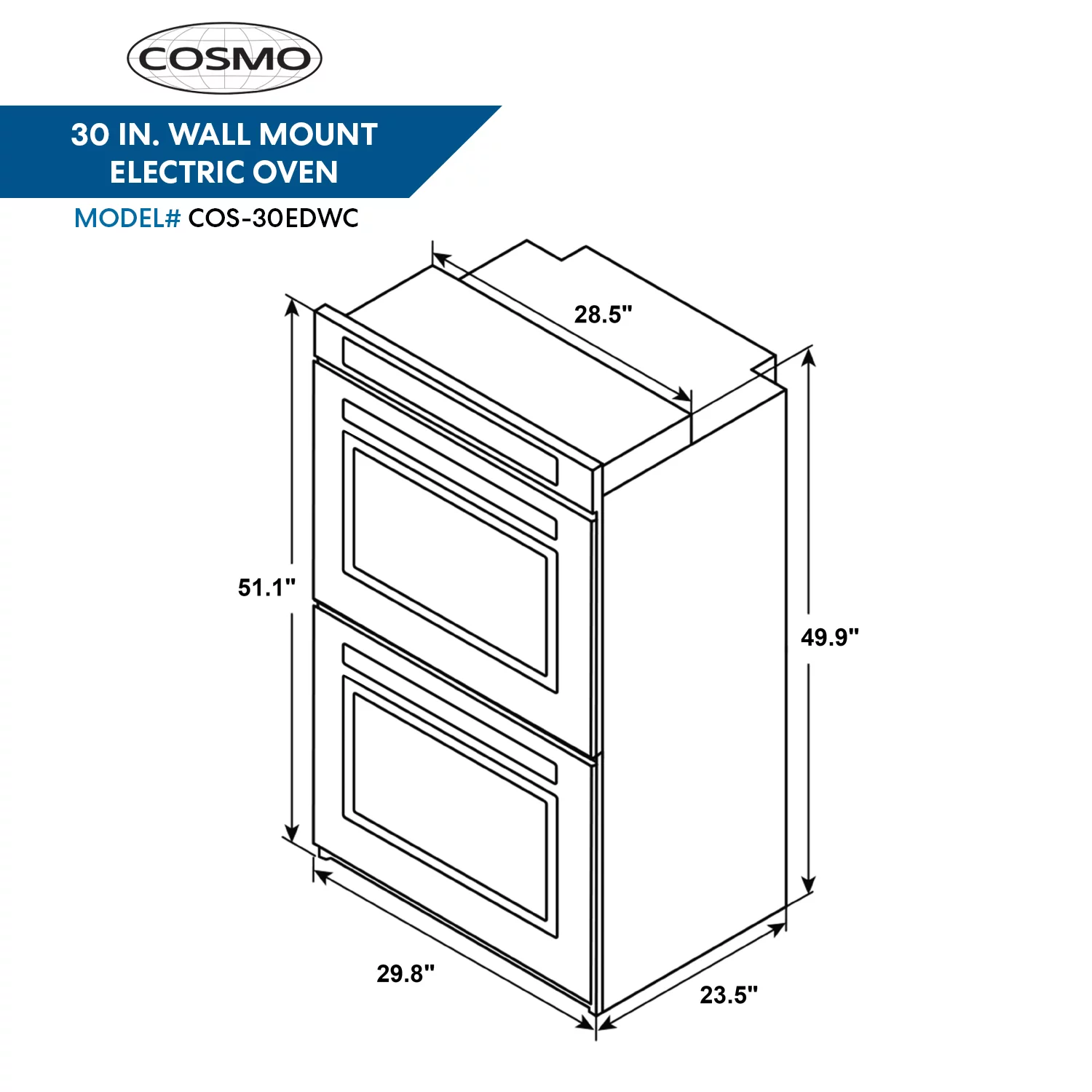 Cosmo 30" Double Wall Oven in Stainless Steel with True European Convection