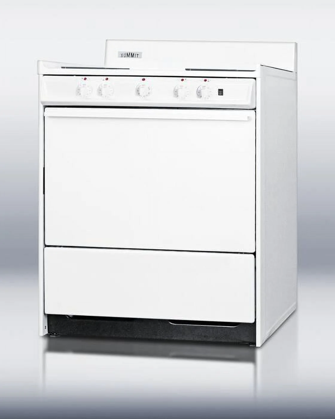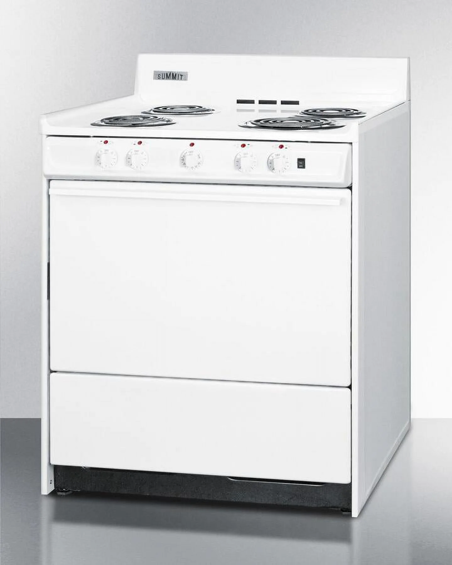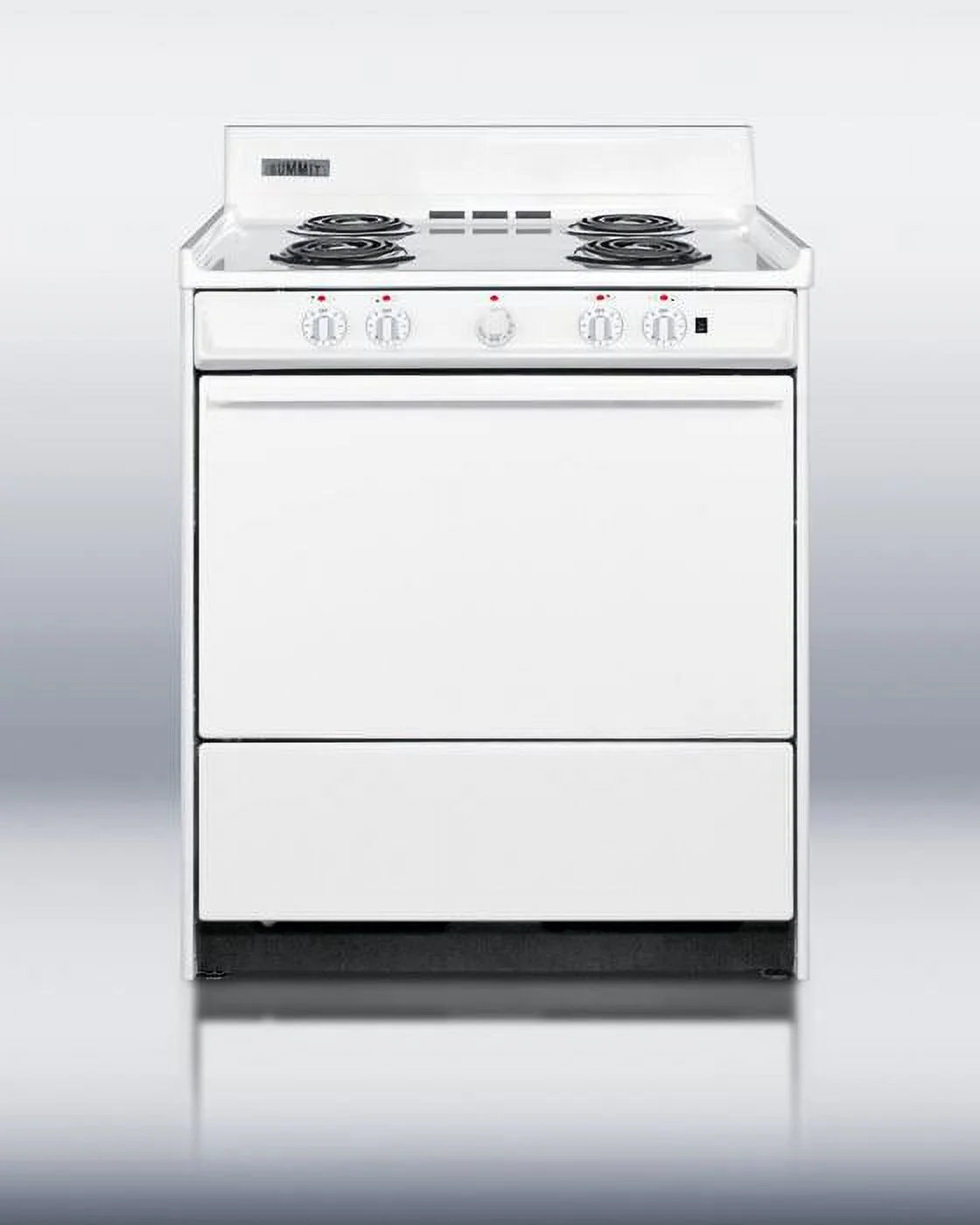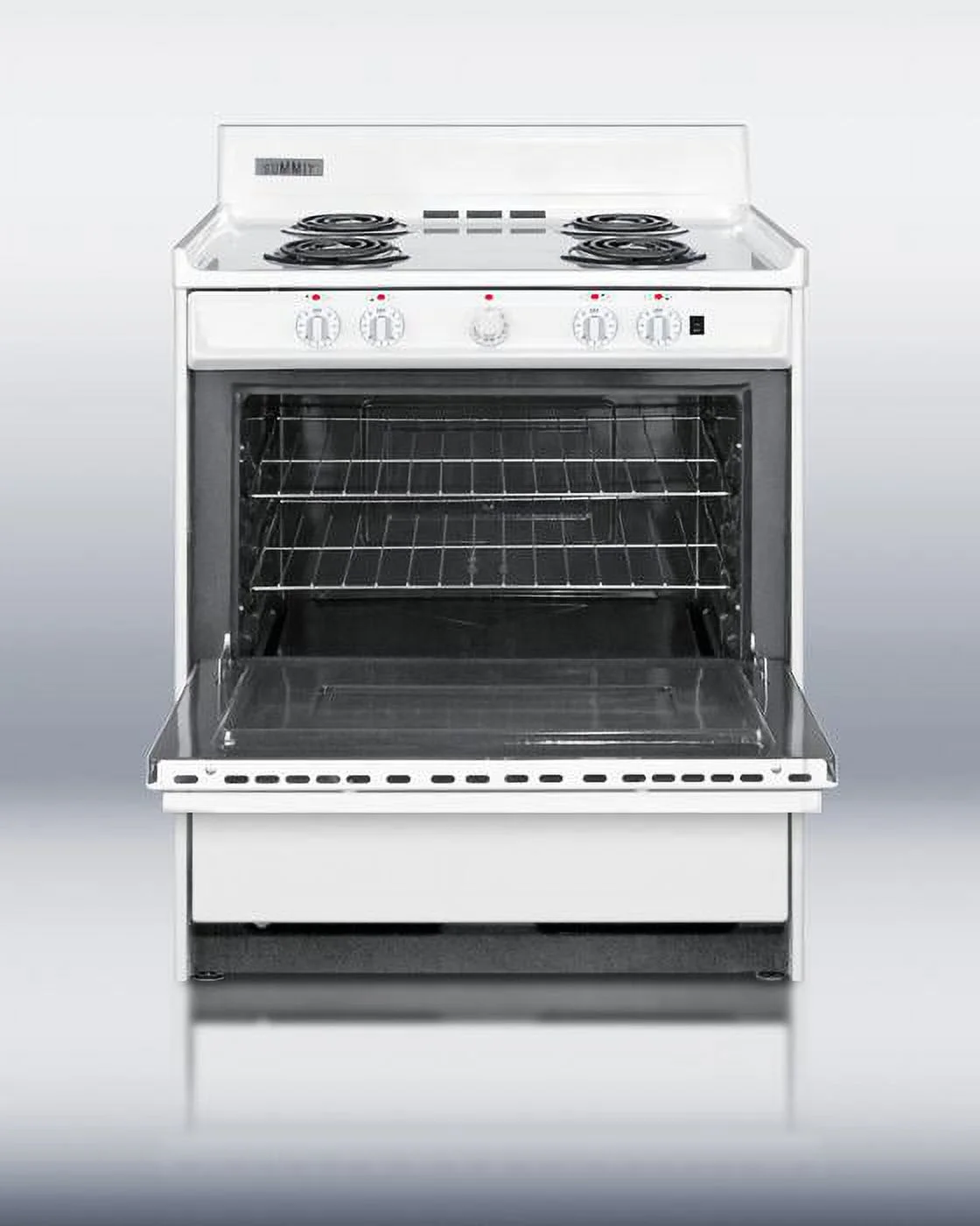 Summit WEM2171Q 30" Freestanding Electric Range with 4 Burners 3.6 Cu. Ft. Capacity Manual Clean Storage Drawer Porcelain oven & 5 Indicator Lights in White
