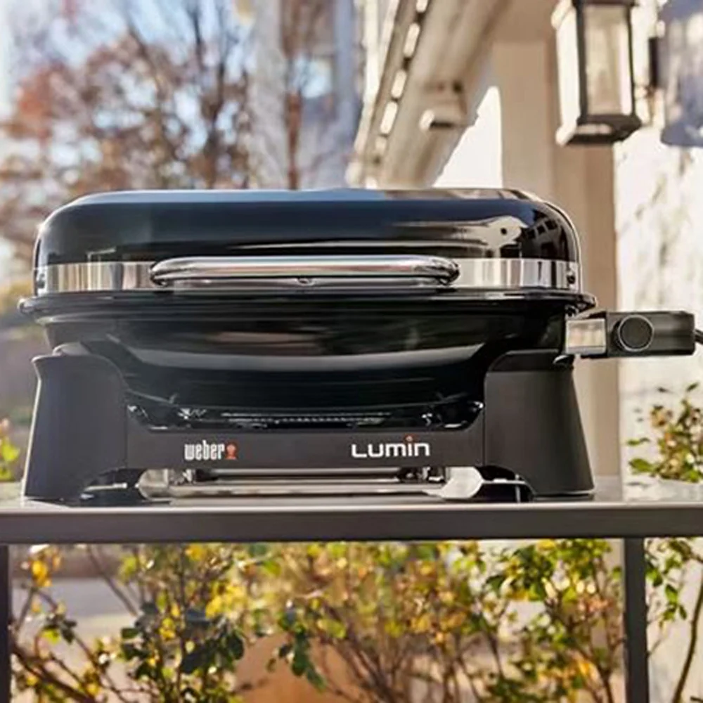 Weber 91010901 Lumin Compact Indoor Outdoor Electric Grill, Black Bundle with Pair of Red Heat Resistant Oven Mitt and 2-Pack Gourmet Duck Fat Spray Cooking Oil