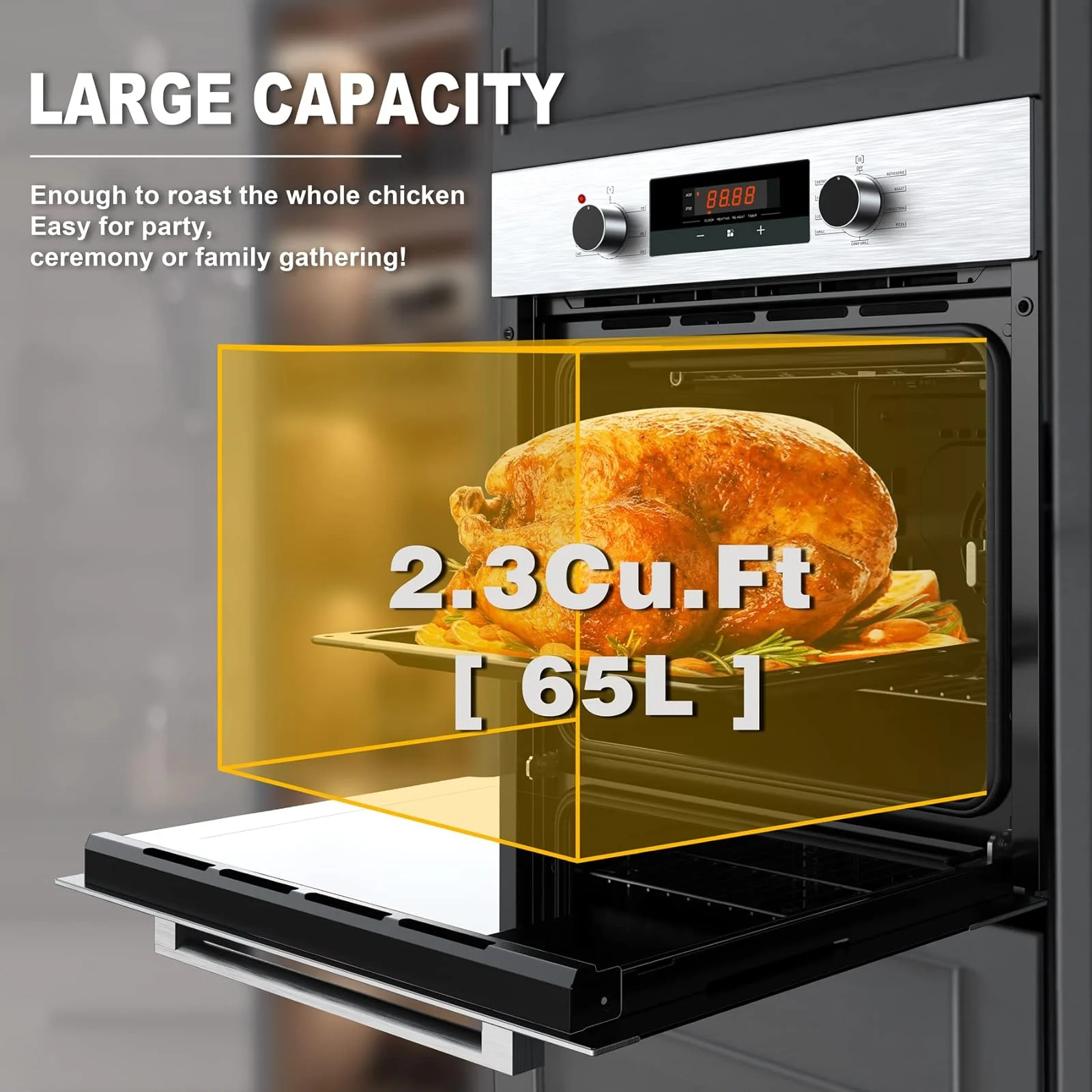 TOPWISH AEO-001 2.3 Cu.ft. Built-in Electric Wall Oven, 24" Single Wall Oven, 9 Cooking Functions, Sensitive Touch Control, Timer, Stainless Steel Finish