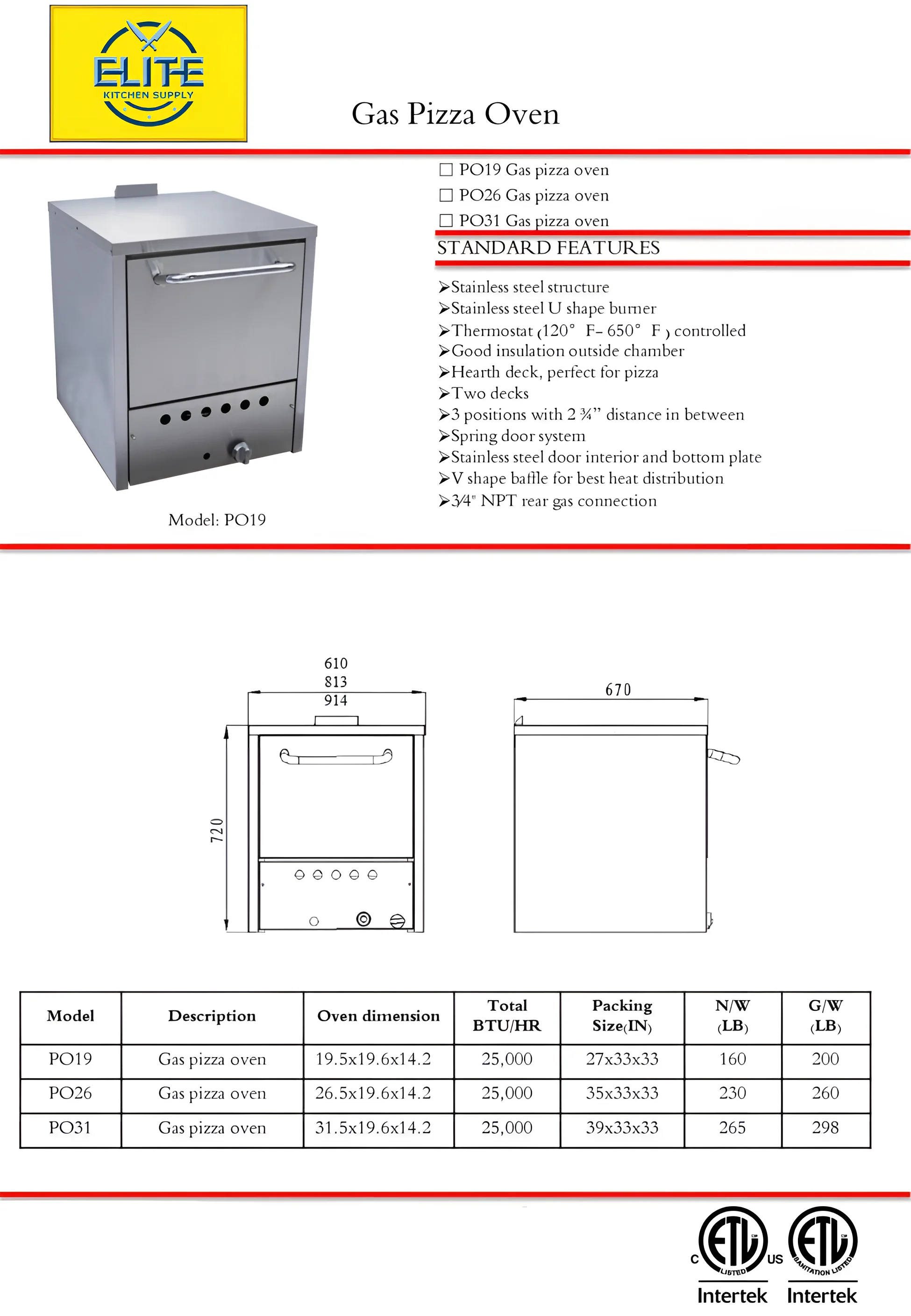 19 in. Commercial Countertop Pizza Oven, 200W Gas Pizza Oven, Bakery , NSF