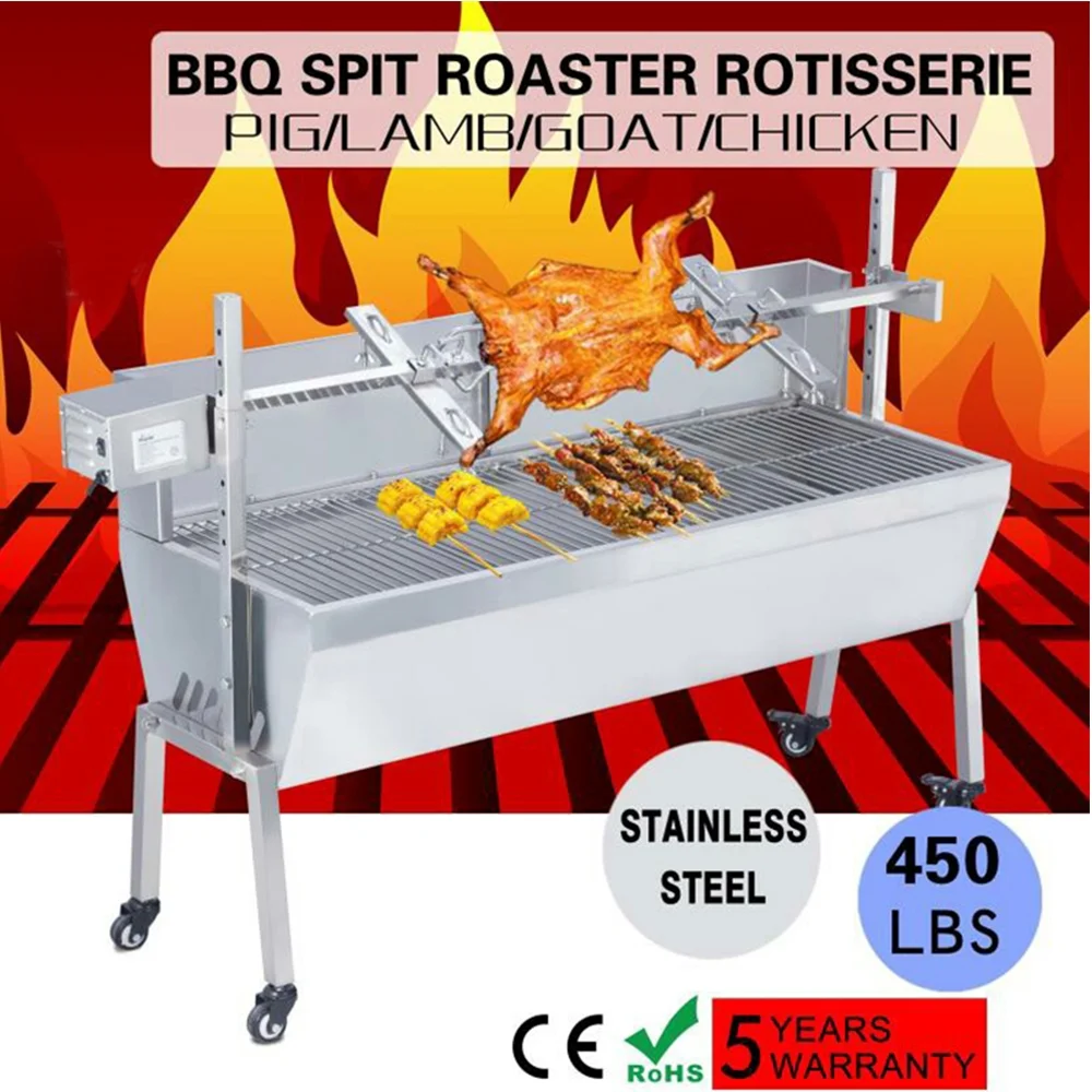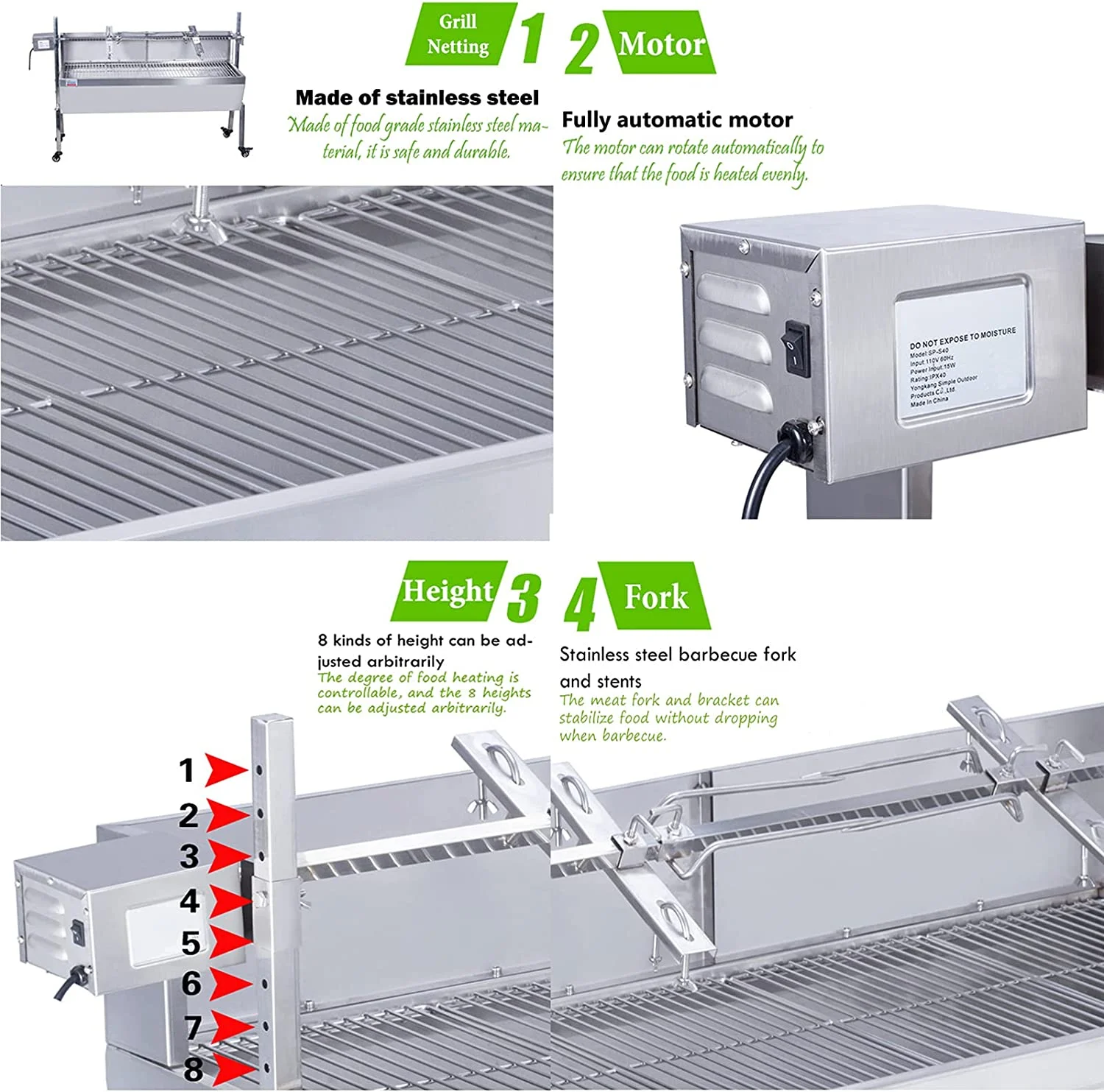 PreAsion New Stainless Steel Roast Whole Lamb Barbecue Oven Electric Rotating Grill Outdoor Charcoal BBQ 118CM 110V