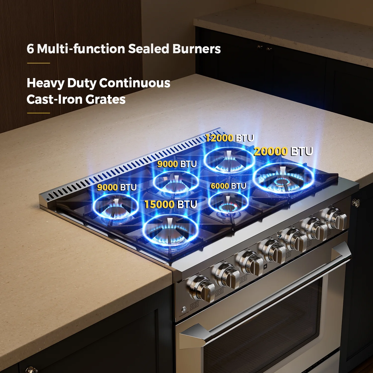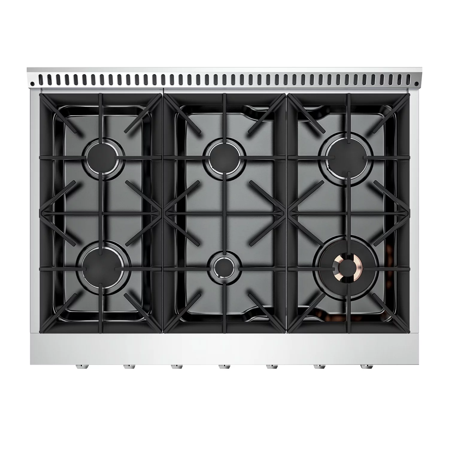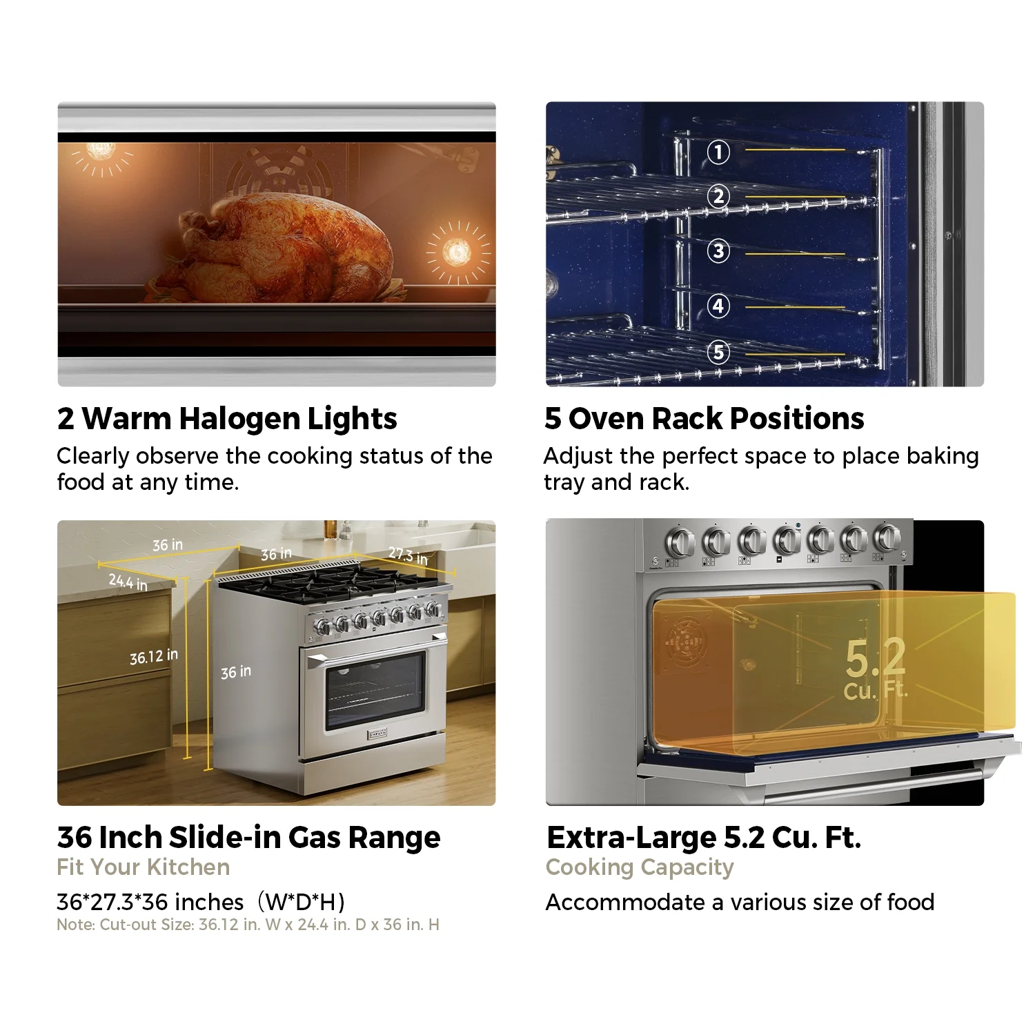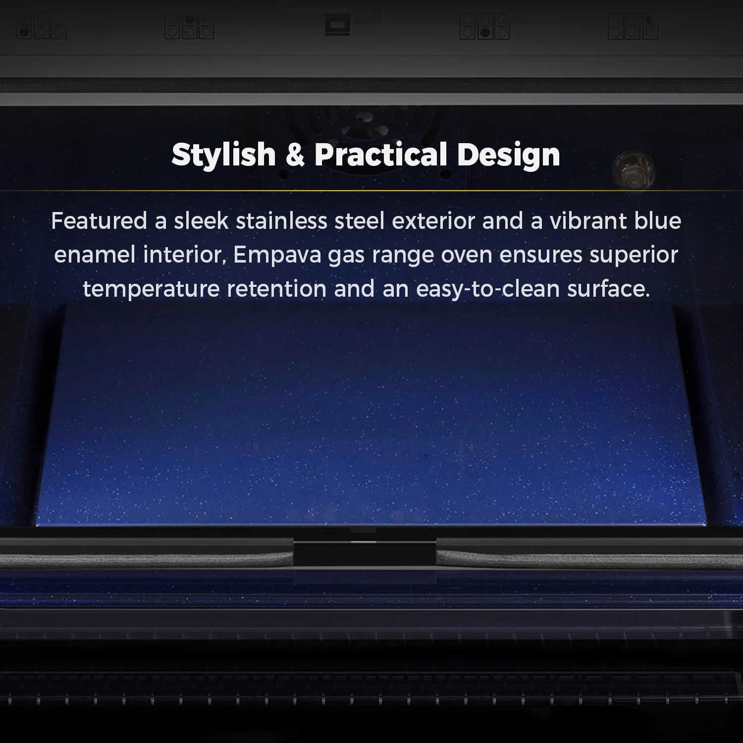 Empava 36 in. 5.2 cu. ft. Pro-Style Slide-In Single Oven Gas Range with 6 Sealed Ultra High-Low Burners - Heavy Duty Continuous Grates in Stainless Steel