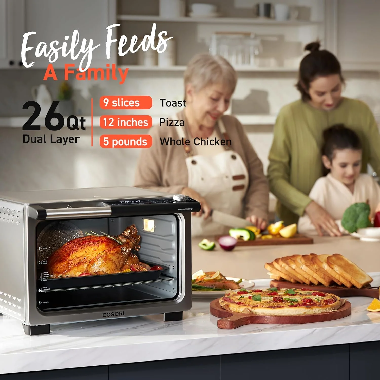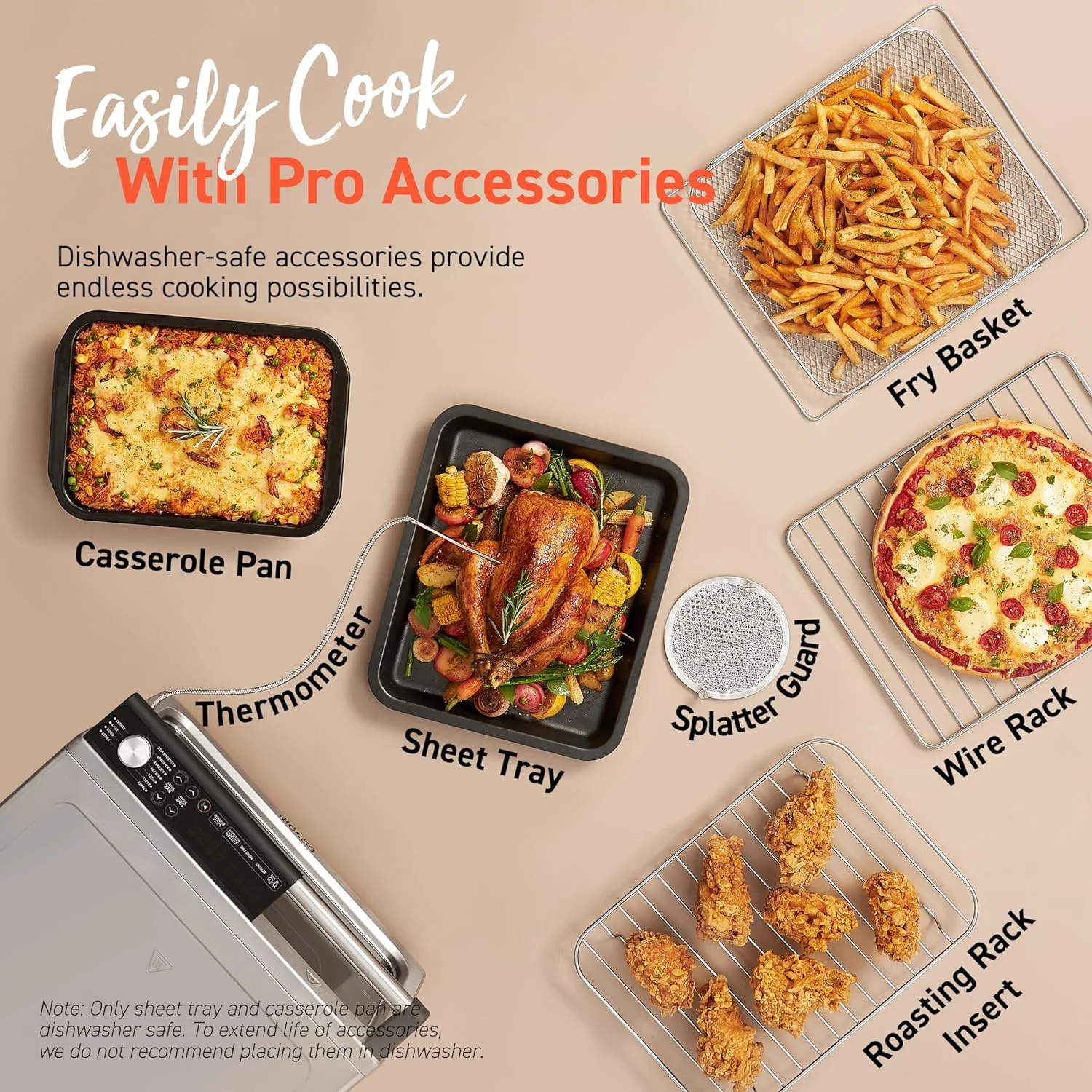 YINCHEN 13-in-1 26-Quart Ceramic Air Fryer Toaster Oven Combo, Flat-Sealed Heating Elements for Easy Cleanup, Innovative Burner Function, 7 Included Accessories & Recipes, CCO-R251-SUS