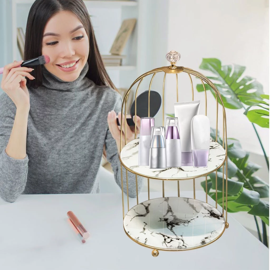 Iron Wire Cosmetic Cage Makeup Organizer Storage Holder Perfume Bottle Shelf Stand Skincare Products Tabletop Organizer - 2 Tier