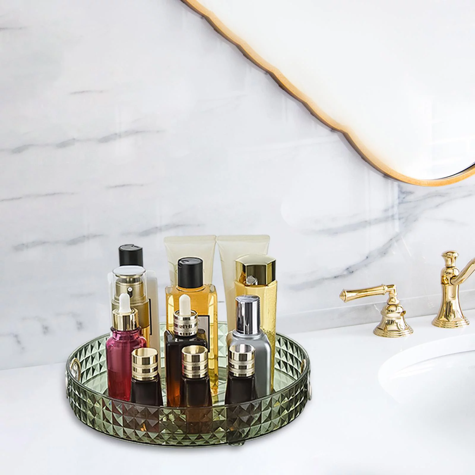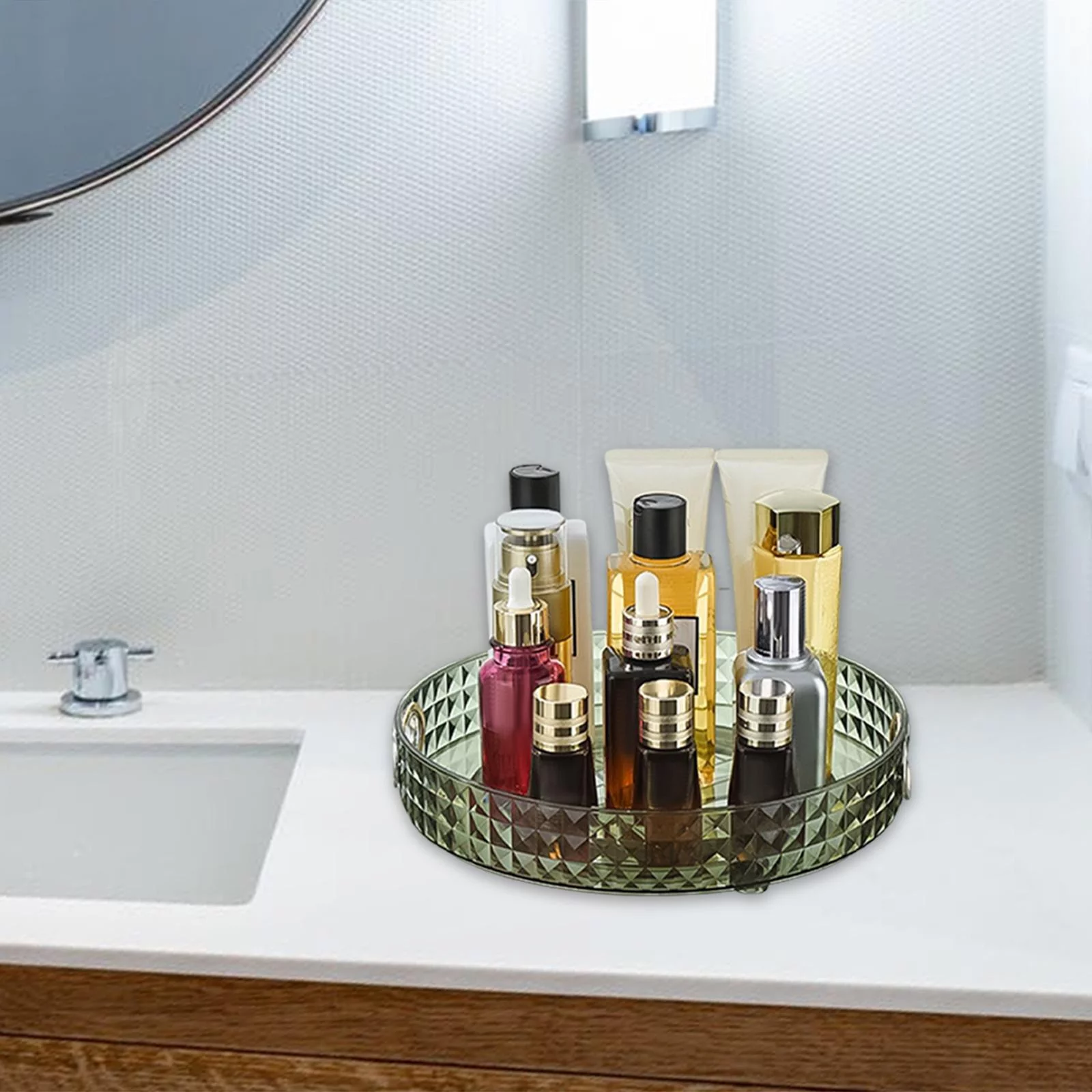Desktop Perfume Tray Rack Turntable Organizer Tray Cosmetic Storage Holder for 1 Tier Green