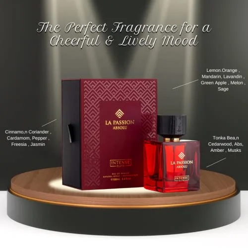 Intense Elite La Passion For Men EDP, Eau de Parfum Men 100ML (3.4Oz), Men's Fragnances,Warming & Long-lasting Perfume for Men, Perfumes Para Hombres, Mens Cologne, Musk & Amber Perfumes for Men.