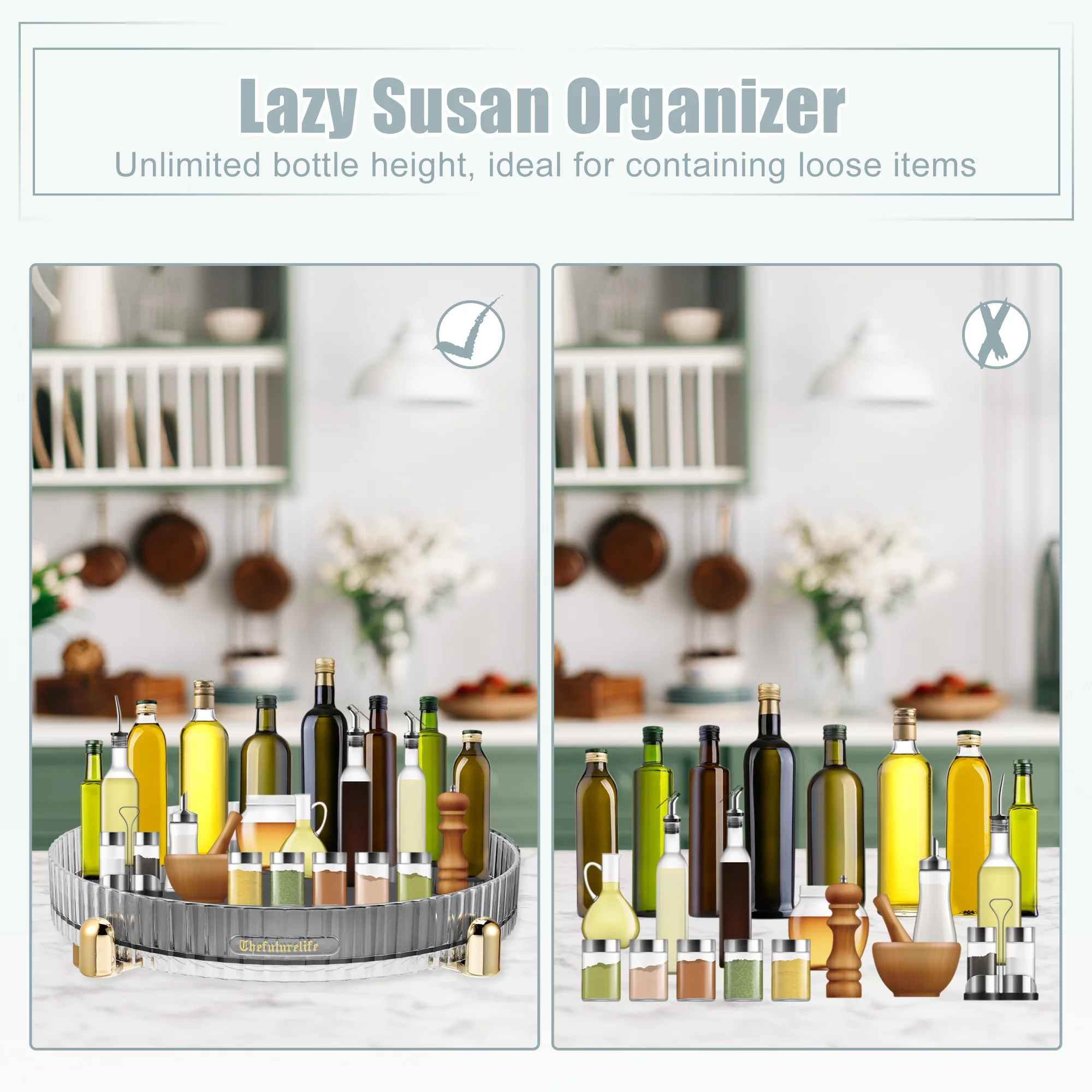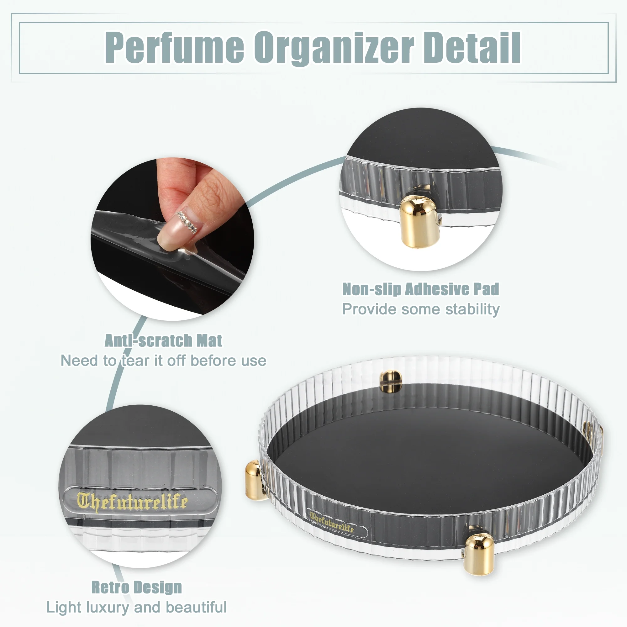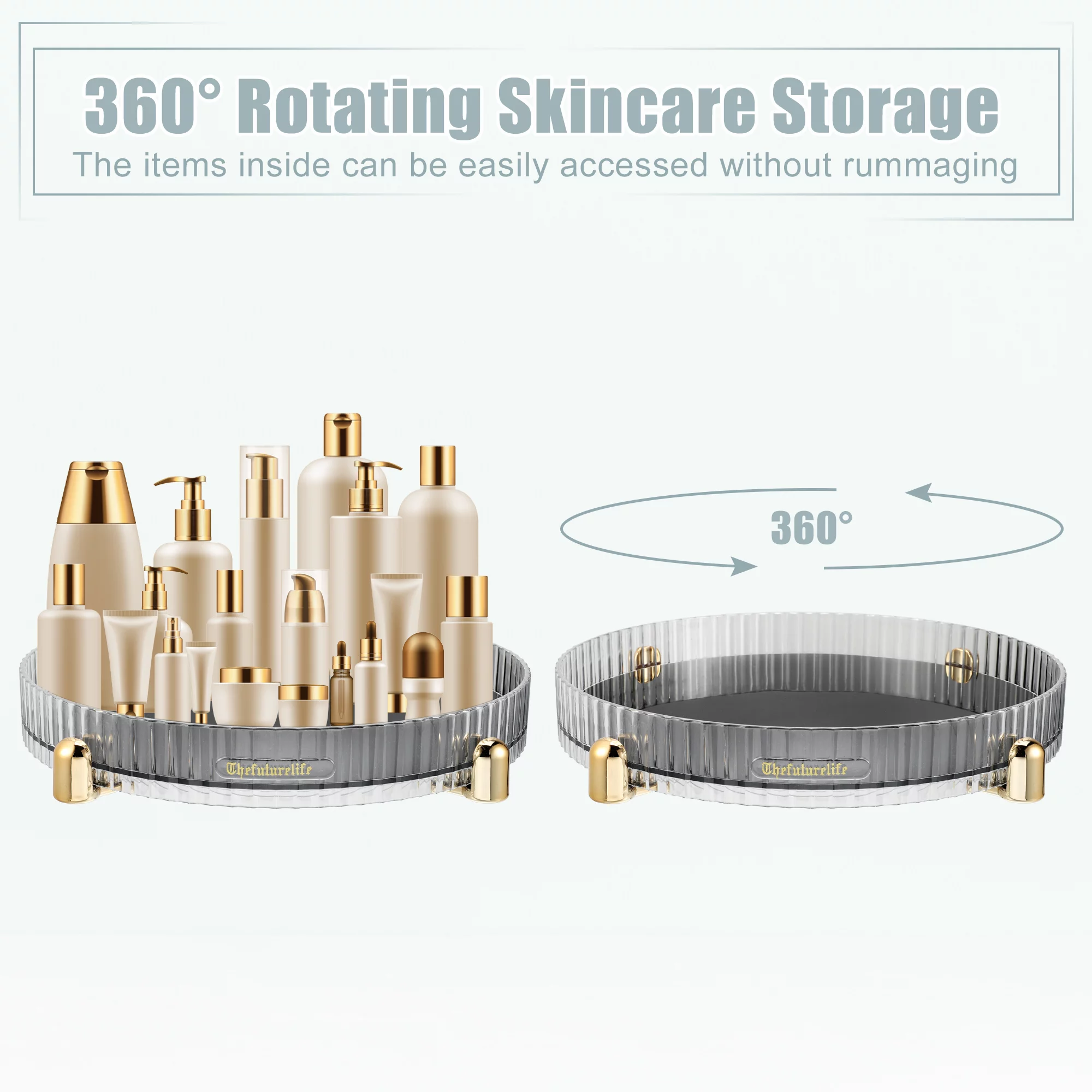 Unique Bargains Makeup Perfumes Organizer 360 Degree Rotating Round Storage Tray Lazy Susan Dressers Storage Gray