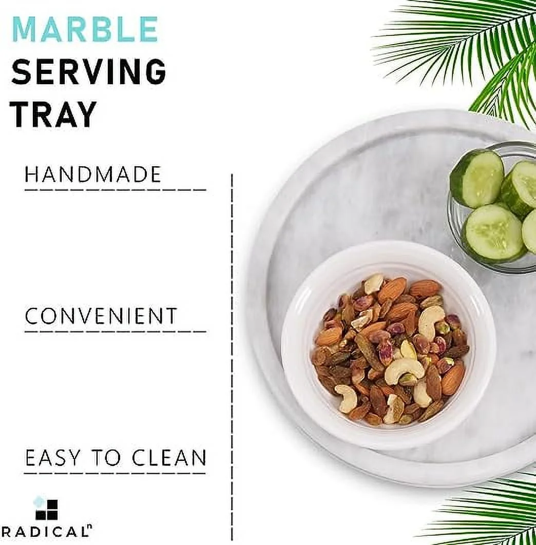 Radicaln Marble Serving Tray White 10" Inch natural Round Bathroom Décor Perfume Tray - Coffee Table Tray for Kitchen Countertop - Makeup Vanity Tray Makeup Storage